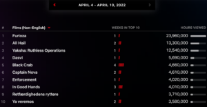 Here’s the full list of the latest Netflix top ten non-English films along with the number of hours viewed.