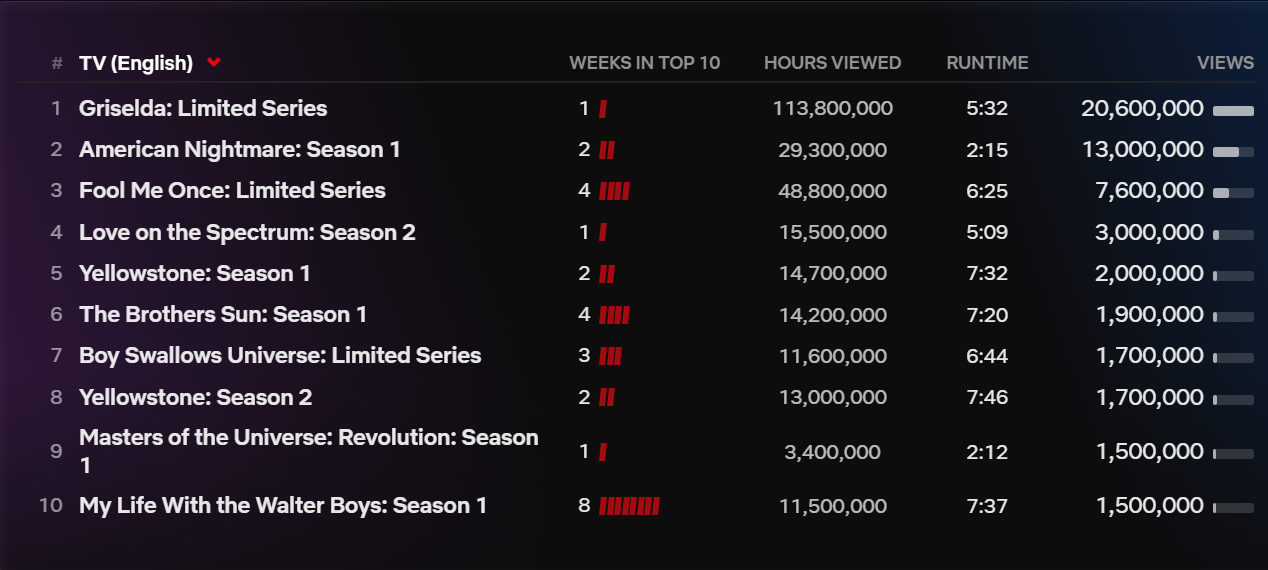 “Griselda” is a hit on Netflix, with millions of people tuning in to watch. The numbers don’t lie – “Griselda” was the most-watched show on Netflix last week, with a whopping 113.8 million hours of views! That’s incredible! Let’s make it clearer as it is just from the debut week. The numbersare gonna get only bigger when we see the full week run of the show.