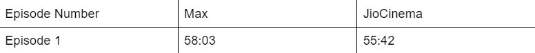 JioCinema claims it is because of the FPS (frames per second) used in rendering the show. Originally, Max calculated the length of the show with a shorter FPS, 23.98 to be precise. On the other hand, JioCinema used a standard 25 FPS calculation, resulting in the shorter episode length.