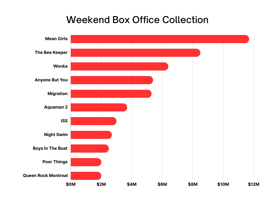 Mean Girls is still at the very top of the Box office, managing to gross $50M in the domestic box office. Also, this week, the film managed to gross $11.7M, doing ok-ish but is far from touching the success of the original title.