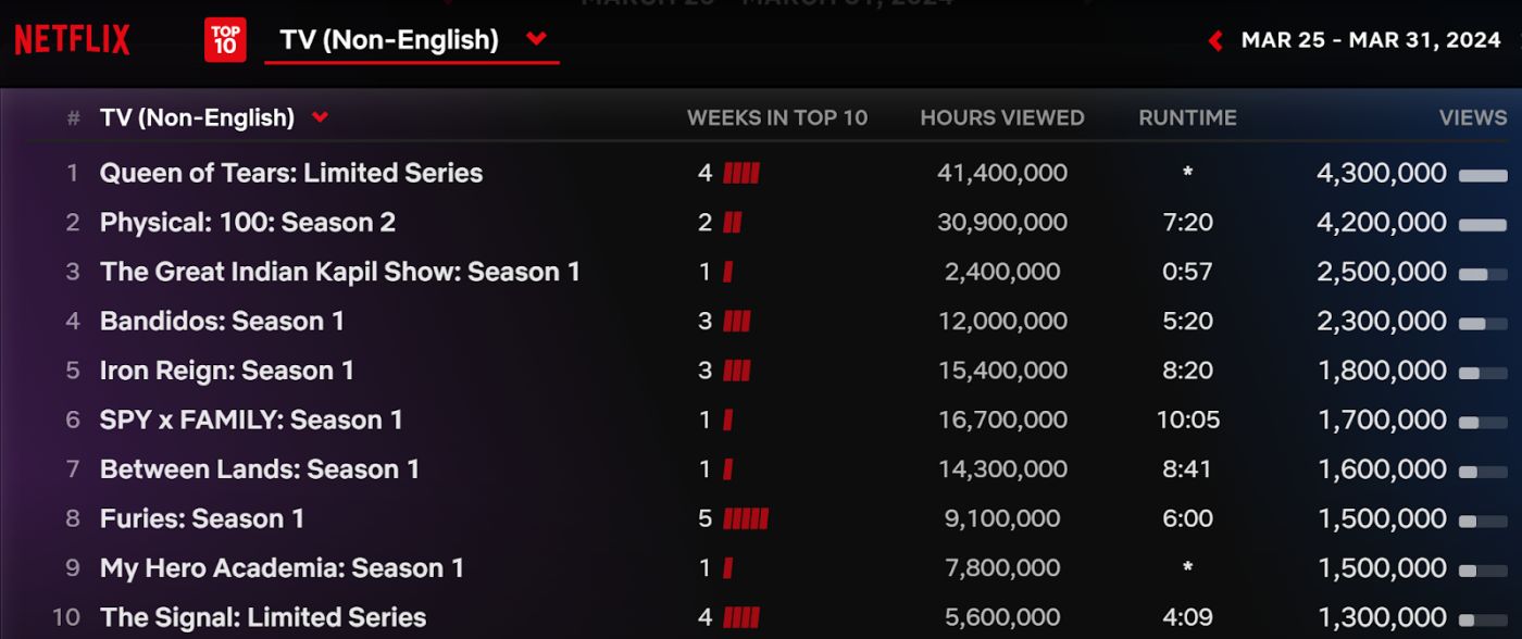 As you can see, it was the third most watched Non-English show on Netflix last week. However, it wasn’t possible without Maths. Since the duration of the show is very very less in comparison to other shows, it helped “The Great Indian Kapil Show” climb the list.