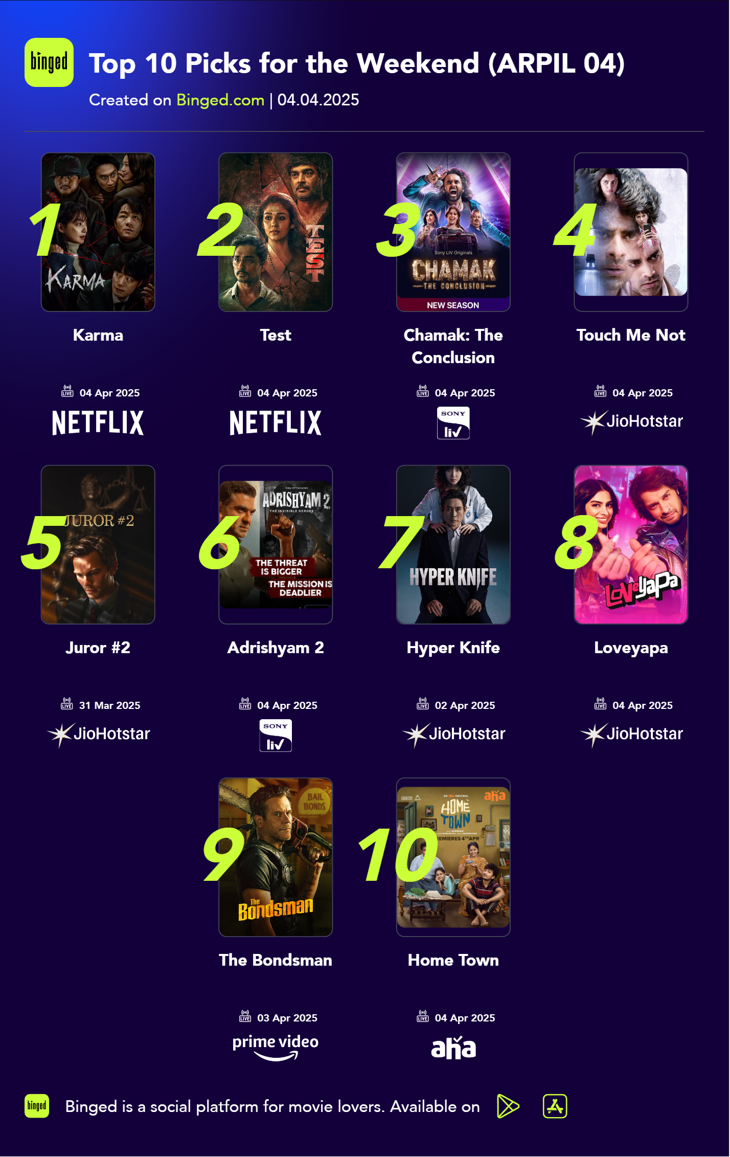 Top 10 Picks for the Weekend (ARPIL 04)
