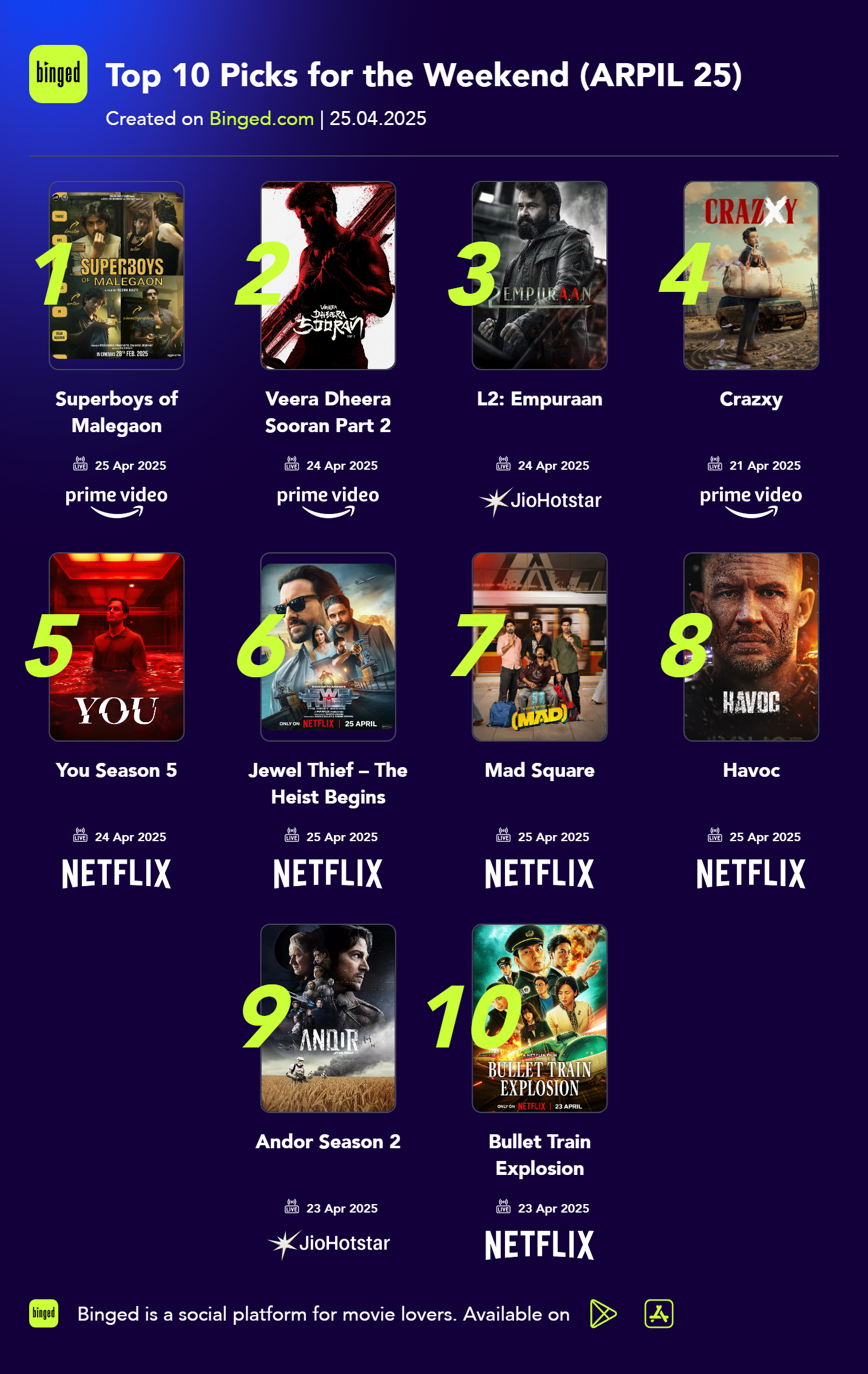 Top 10 Picks for the Weekend (ARPIL 25)