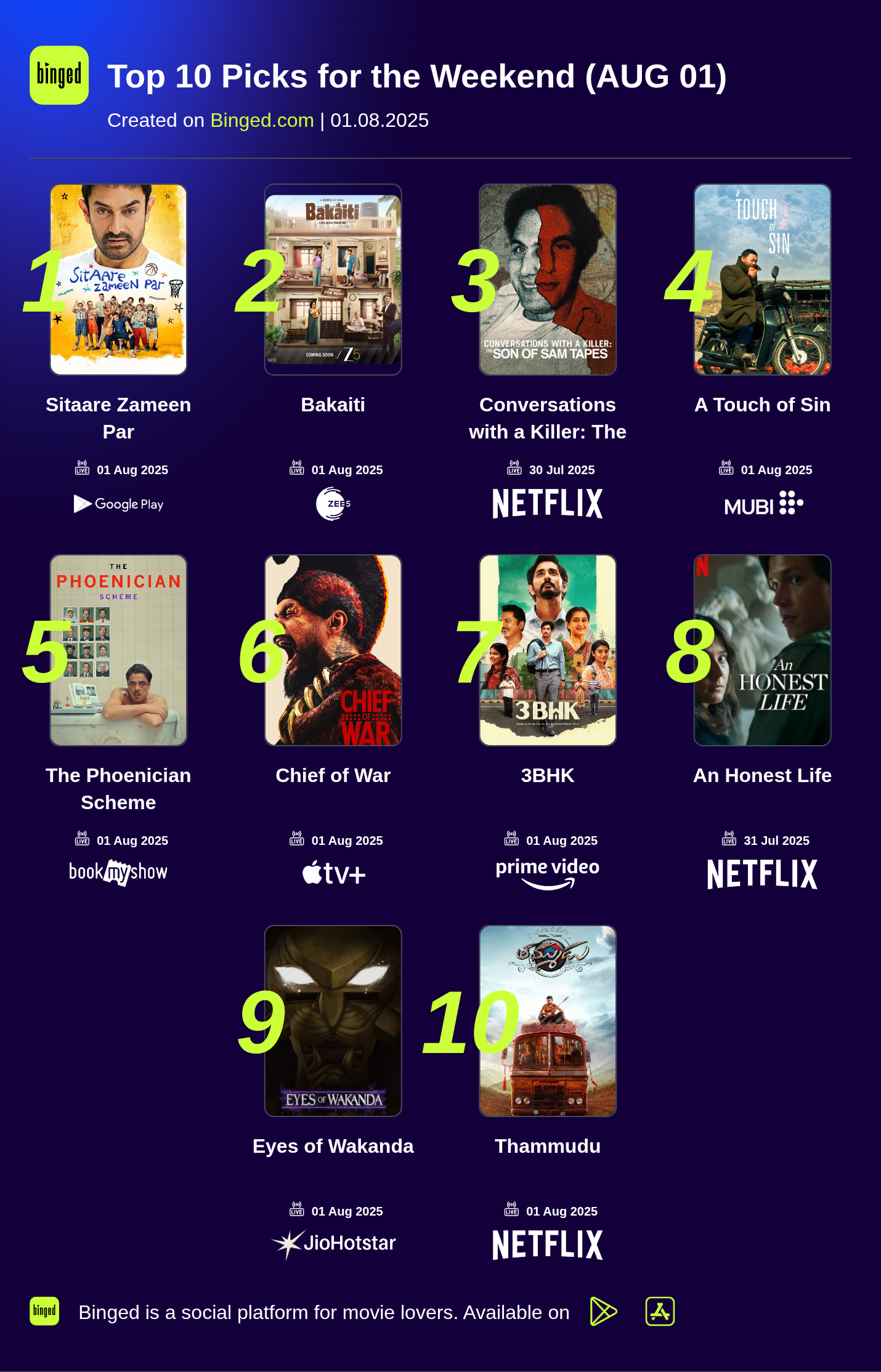 Top 10 Picks for the Weekend (AUG 01)