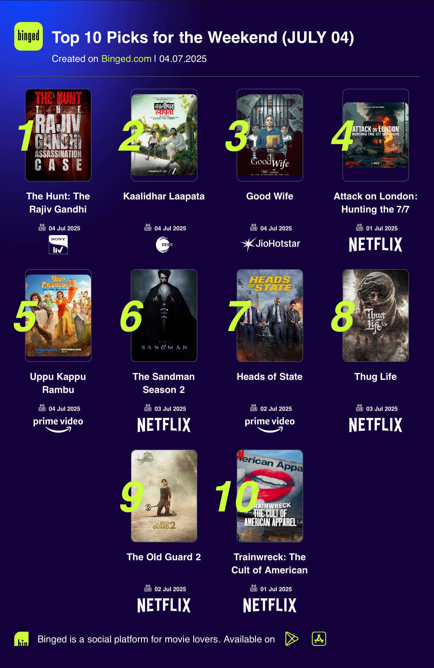 Top 10 Picks for the Weekend (JULY 04)