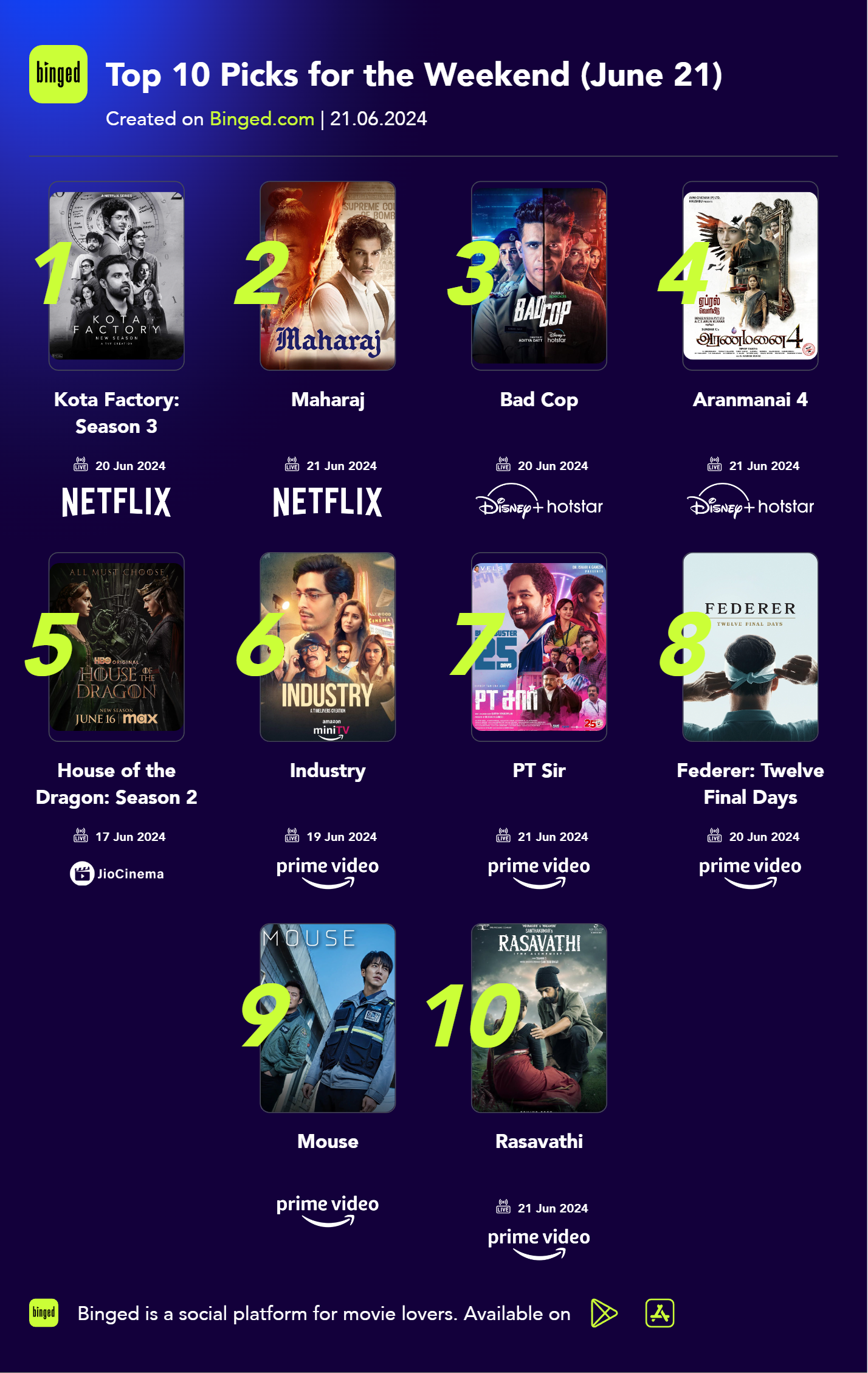 Top 10 Picks for the Weekend (June 21)