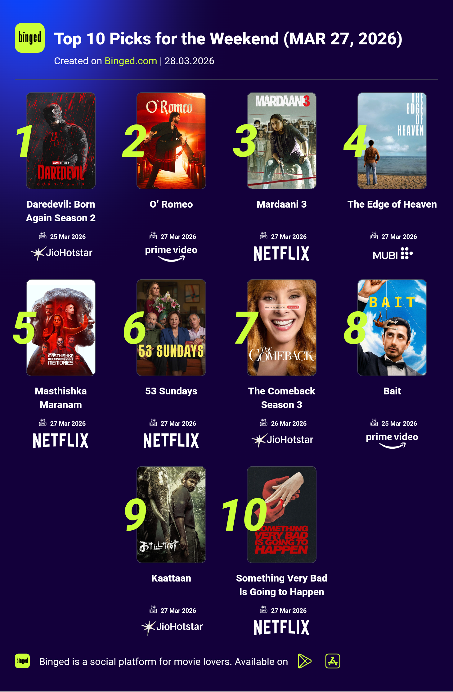Top 10 Picks for the Weekend (MAR 27, 2026)