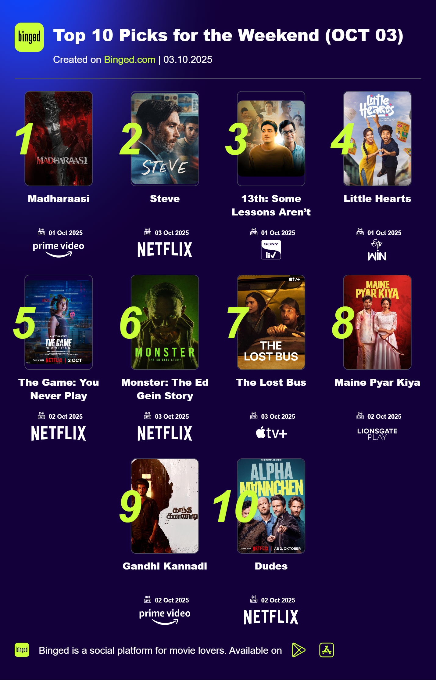 Top 10 Picks for the Weekend (OCT 03)