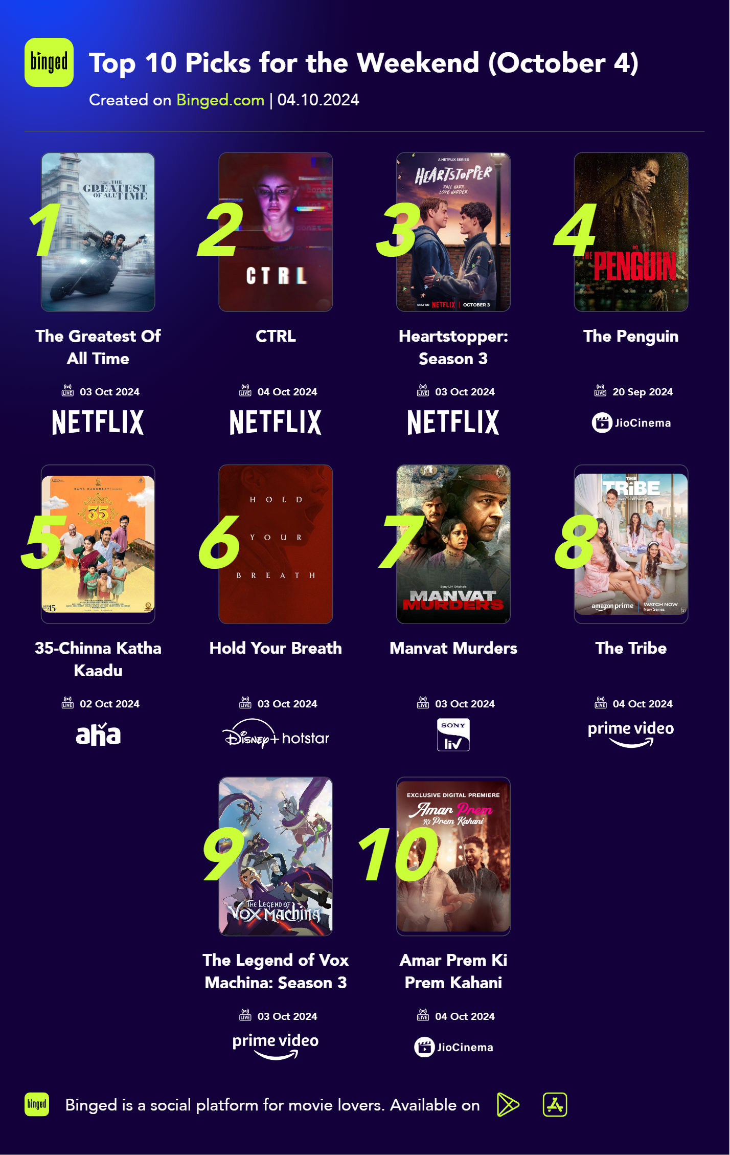 Top 10 Picks for the Weekend (October 4)