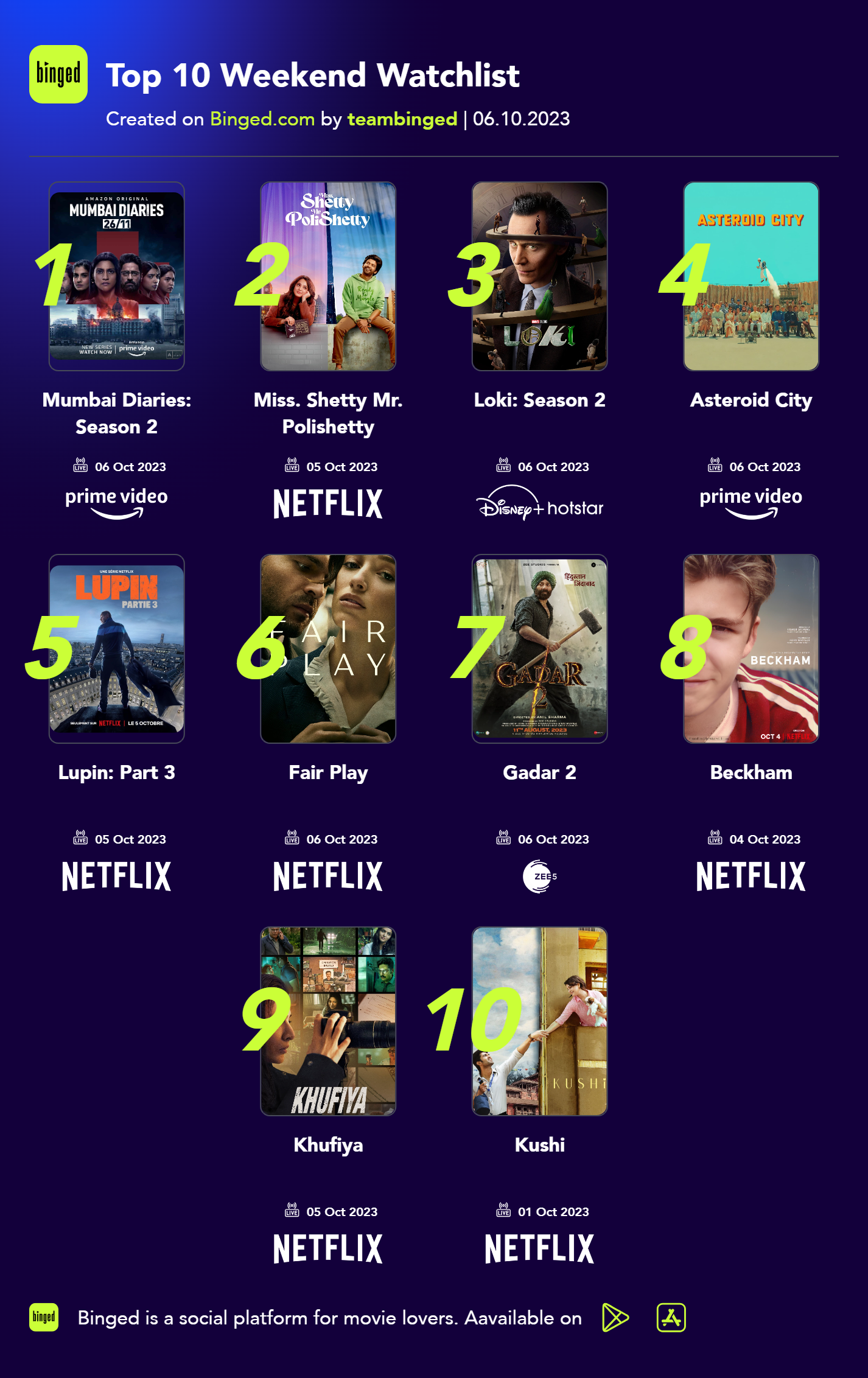 Top 10 Weekend Watchlist