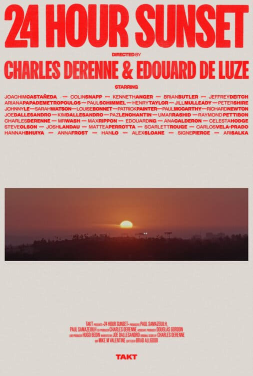 This film portrait of a new kind is a deep dive into the heart of the los angeles art scene. From a ride on Sunset boulevard in a convertible car at the sunrise, going Through a lunch with the art dealer Patrick Painter and a visit to Peter Shire’s studio… Having a beer and a deep talk with Paul McCarthy, calling Raymond Pettibon stuck in New-York or searching for Ed Ruscha in bars…. From Ariana Papademetropoulos opening exhibition to the visit of a car wreck with Umar Raschid… From the old house of Cary Grant to the dodgy underground of Downtown passing through Eugenio Lopez’s private art collection on the Hollywood hills… Through intimate conversation, 24 Hour Sunset gives us access to the thoughts, inspirations and practice of legendary artists, world famous art dealers, appraised curators and collectors, as well as the young up coming scene of artists living in Los Angeles.