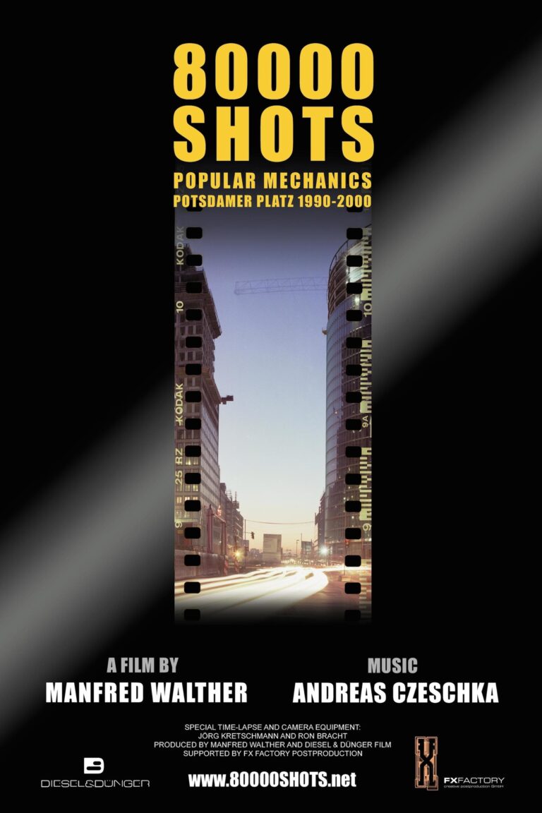 80000 Shots is a German film directed by Manfred Walther. It was released in 2002 and had its premiere at the Berlin International Film Festival. In breathtaking speed, 80000 SHOTS is a documentary about the reconstruction of Berlin’s Potsdamer Platz. This 53 minutes’ film, shot in timelapse between 1990 – 2000 had its première at the Berlin International Film Festival 2002.