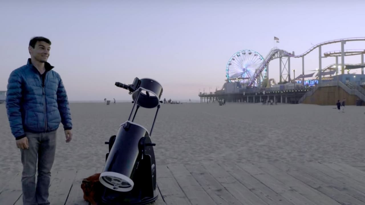 Wylie carries a telescope through the streets of Los Angeles to offer passersby a new and closer look at a familiar object: the moon. Because everyone needs to keep looking up. Because it is a beautiful and wondrous sight to behold the body of the moon.