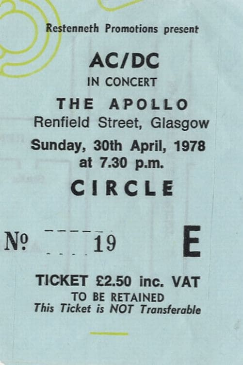 AC/DC’s concert at The Apollo on 30 April 1978 later became the bulk of the band’s first live album, ‘If You Want Blood You’ve Got It’ a month later. Tracks: Riff Raff, Rock ‘n’ Roll Damnation, Dog Eat Dog, Bad Boy Boogie, Let There Be Rock, Rocker.