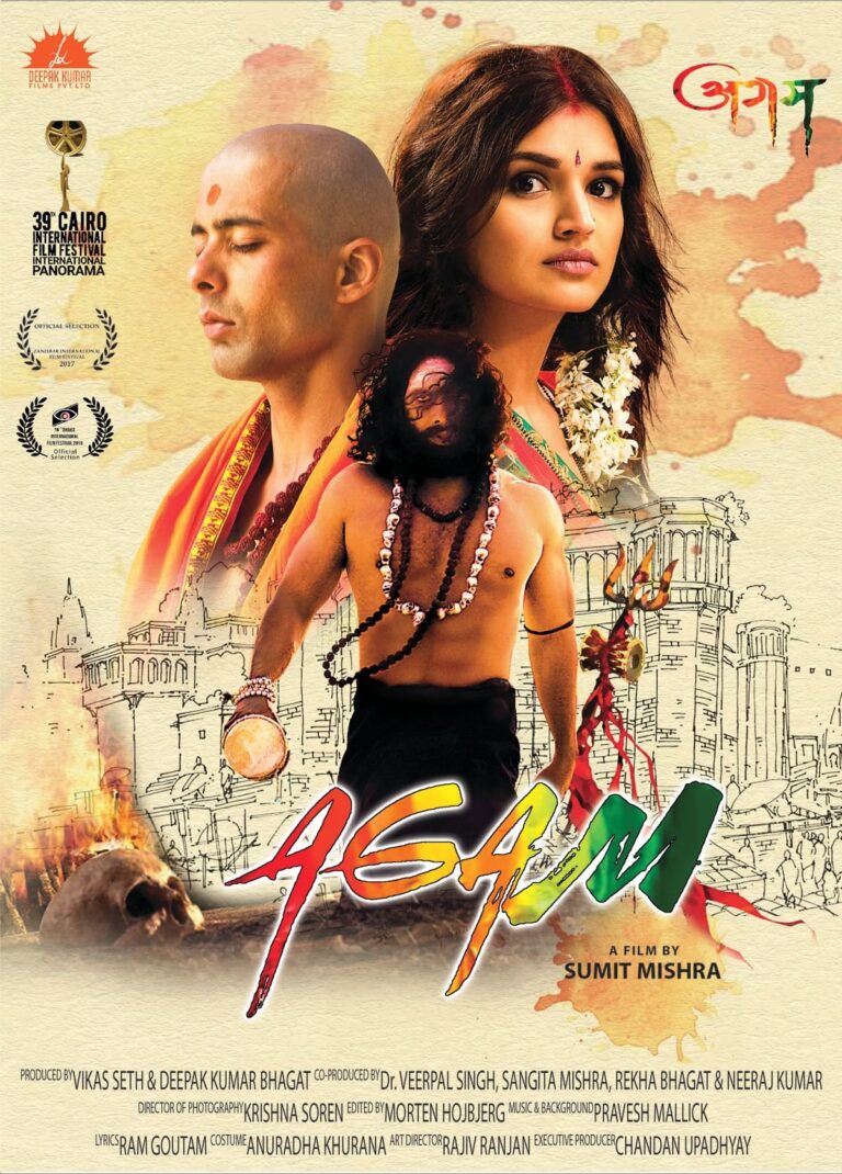 AGAM is a film based on three stories set in the backdrop of Varanasi, the city of Shiv (Religion), Shav (Corpse) and Tantra (Occult). “Yatra” is the story of the beginning of a journey of a traveler who has freed himself and moves ahead in his quest of knowledge and truth having broken the shackles and the impenetrable fort of the so called “God head and the Matha (Hindu Monastery)”. “Manikarnika” is the story of a newlywed bride who tries to mould herself and conquer the ways of Manikarnika Ghat, smell and surrounding of burning corpses and rhythmic chanting of Ram Naam Satya Hai. “Deh-Tantra” is the story of uncontrived love, an attraction between a man and woman and the psychology of the masculine and feminine woven under the dark blanket of the so called and age-old established occult and ultimately overruling all the occult disciplinary and surrendering themselves to the love and physical attraction.