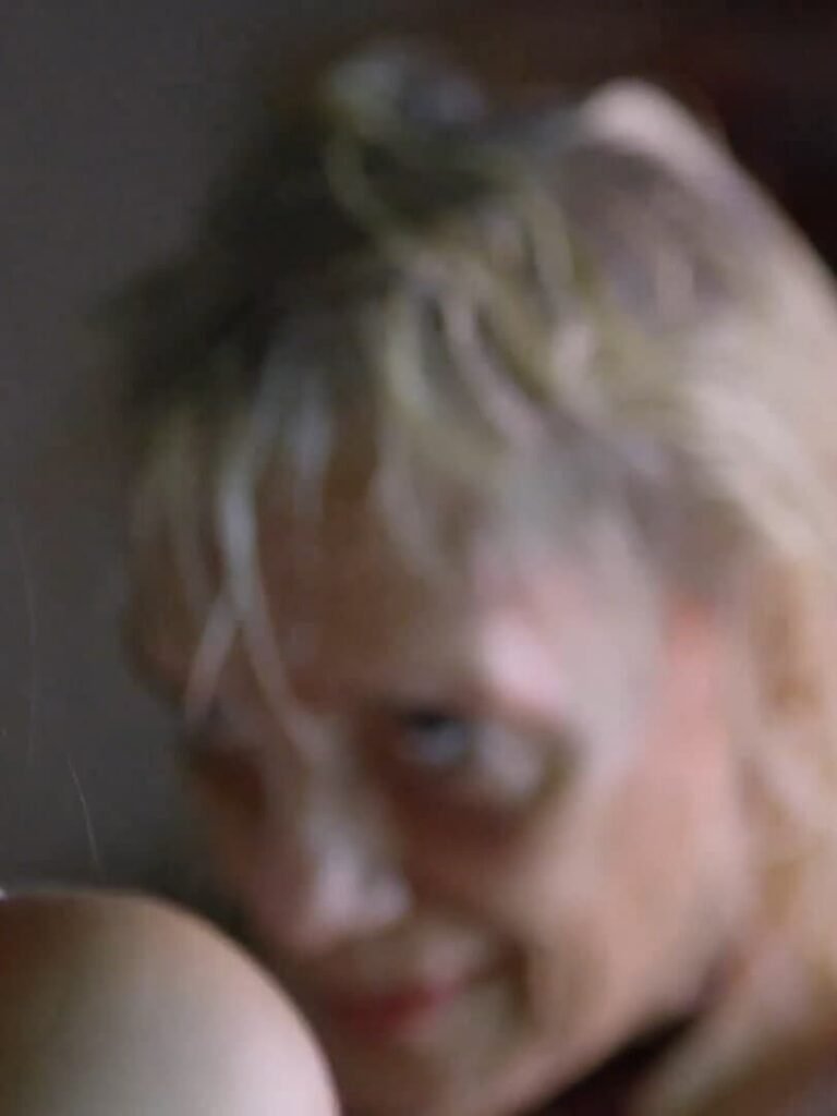 A woman encounters an older woman wearing a hospital gown at night.
