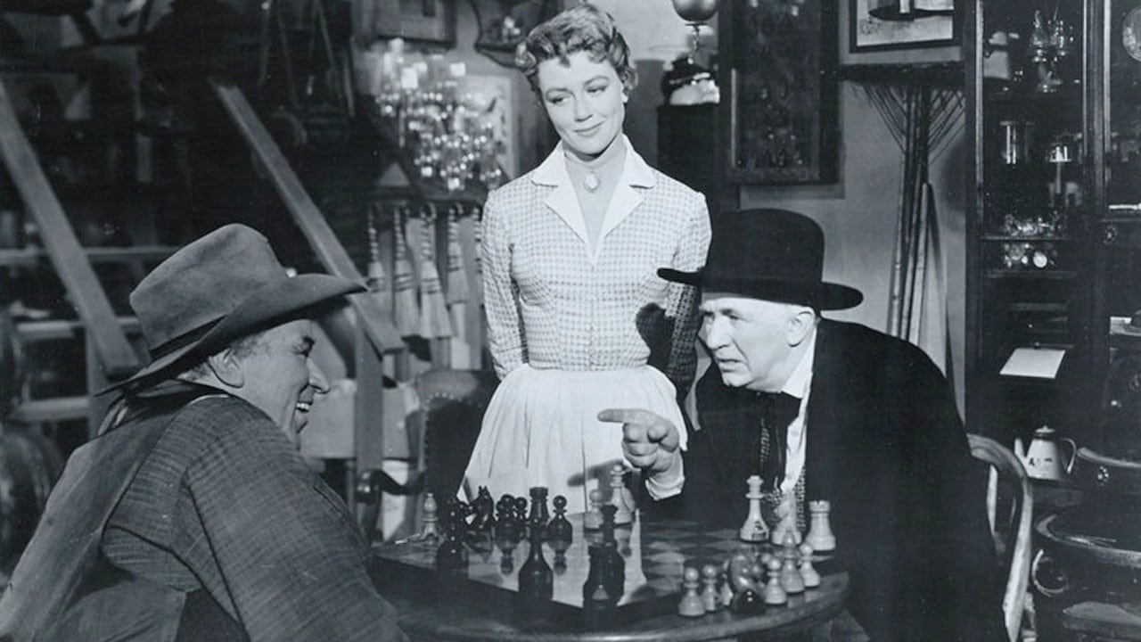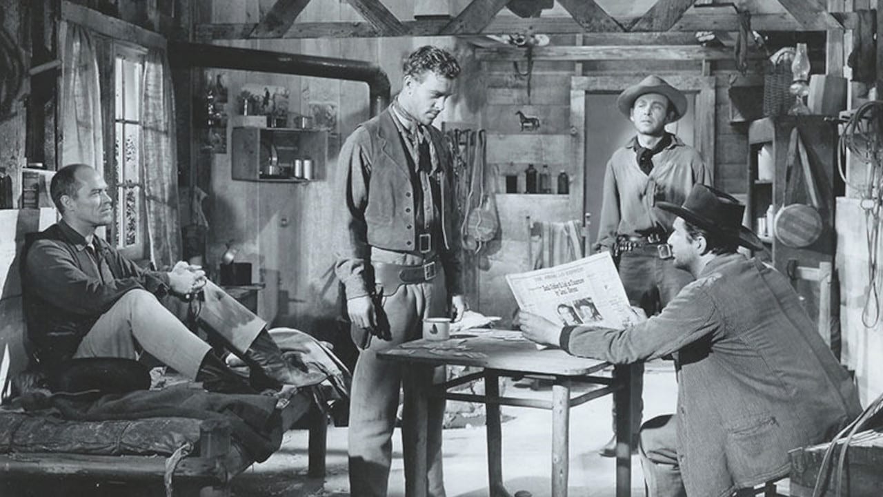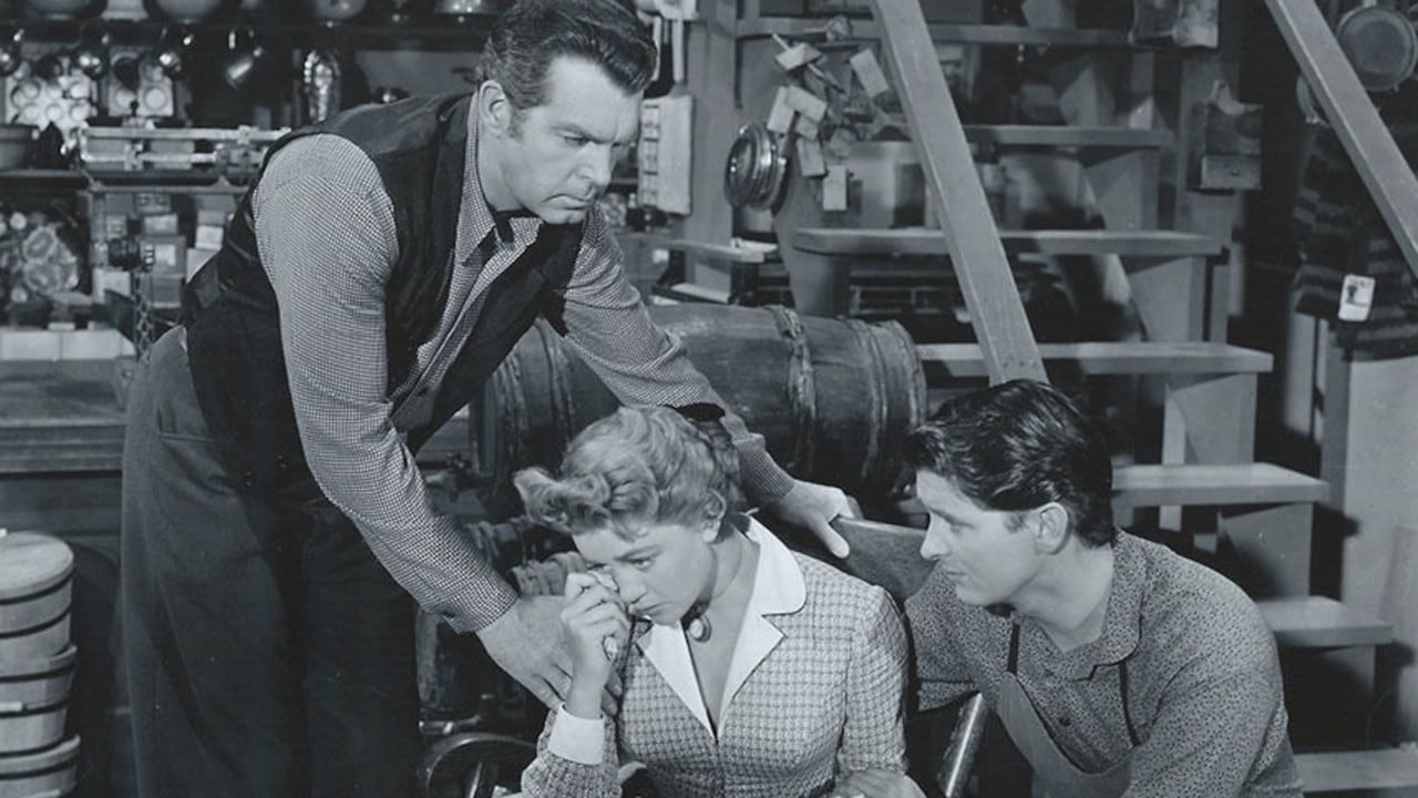 A general-store keeper (Fred MacMurray) scares off bank robbers with a lucky shot, but they come back.