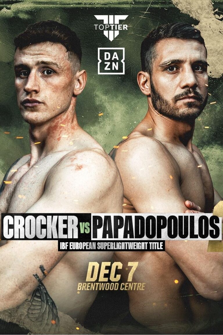 Ben Crocker (13-0) and Stelios Papadopoulos (15-1-2) meet for the IBF European Super Lightweight strap at Brentwood Centre, the headline fight on a Top Tier Boxing card. Crocker won a tight points decision when the pair met in April over eight rounds.