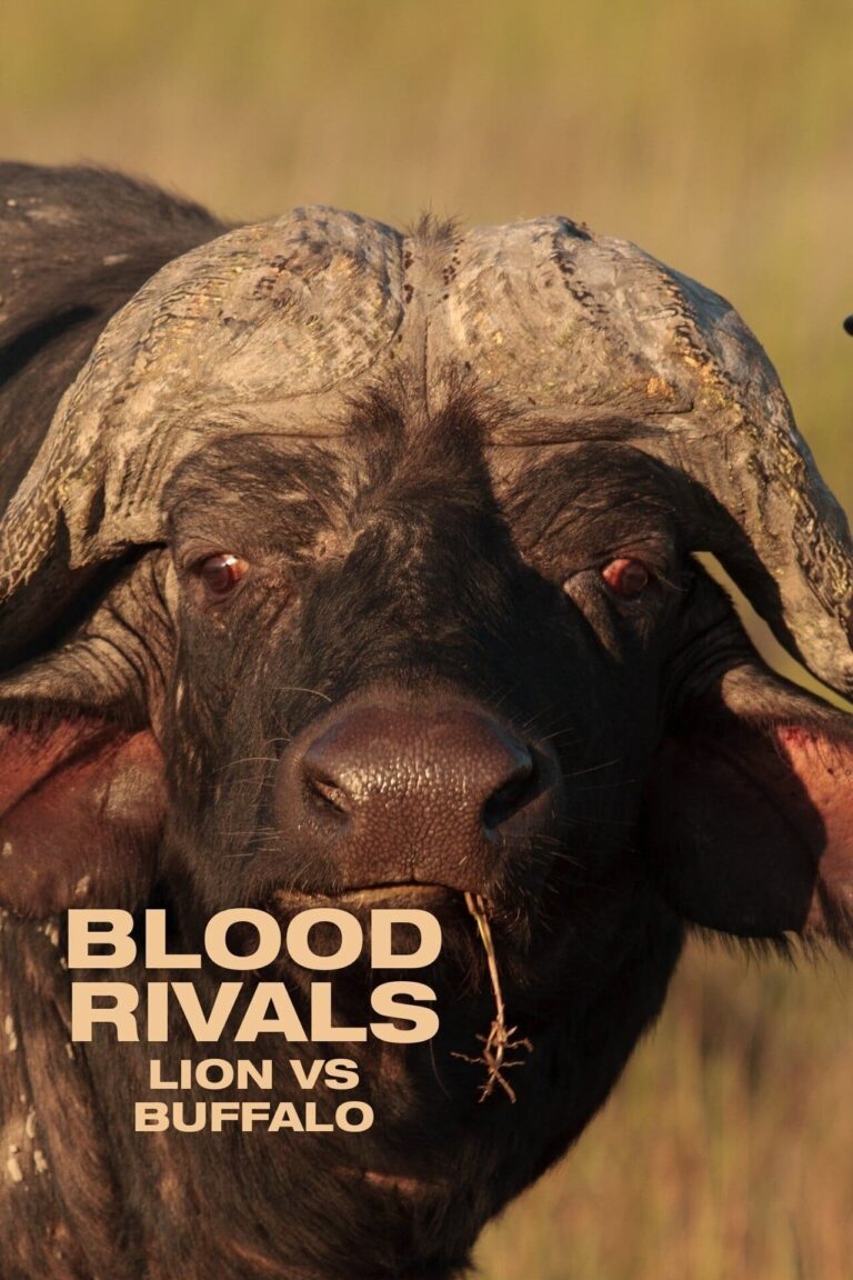 Lions and buffalo battle for survival on the African grassland.