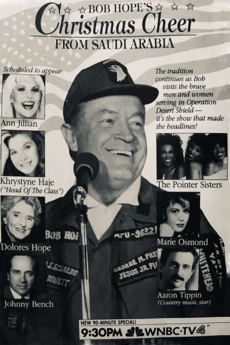 Three years after taping his previous show in the Persian Gulf, Bob Hope returns to the front line to put on another USO Christmas extravaganza, this time in Saudi Arabia for US Troops preparing with other nations to expel Iraq’s 1990 invasion and attempted annexation of Kuwait.