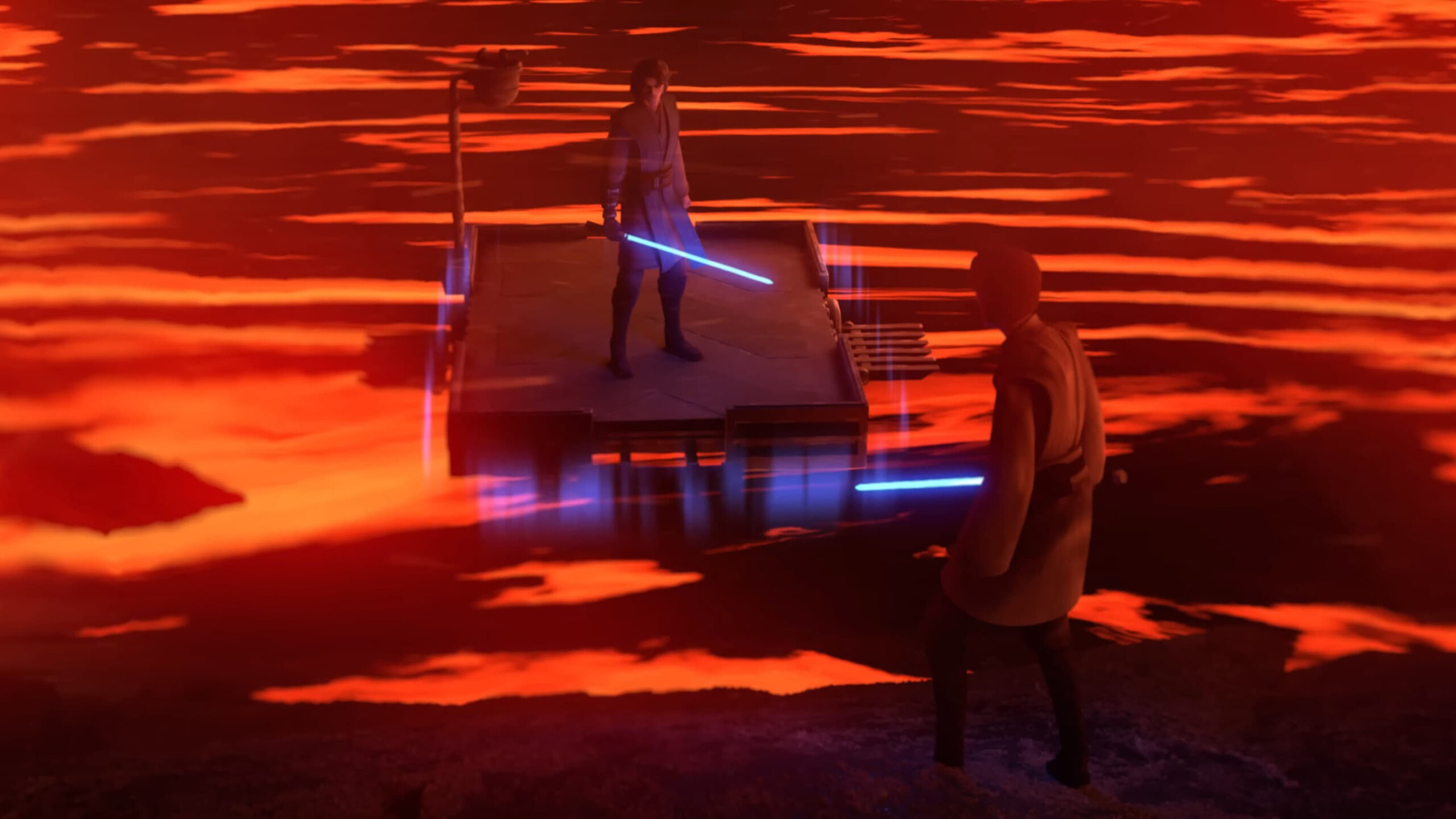 Witness the epic showdown between Anakin and Obi-wan in the style “The Clone Wars”
