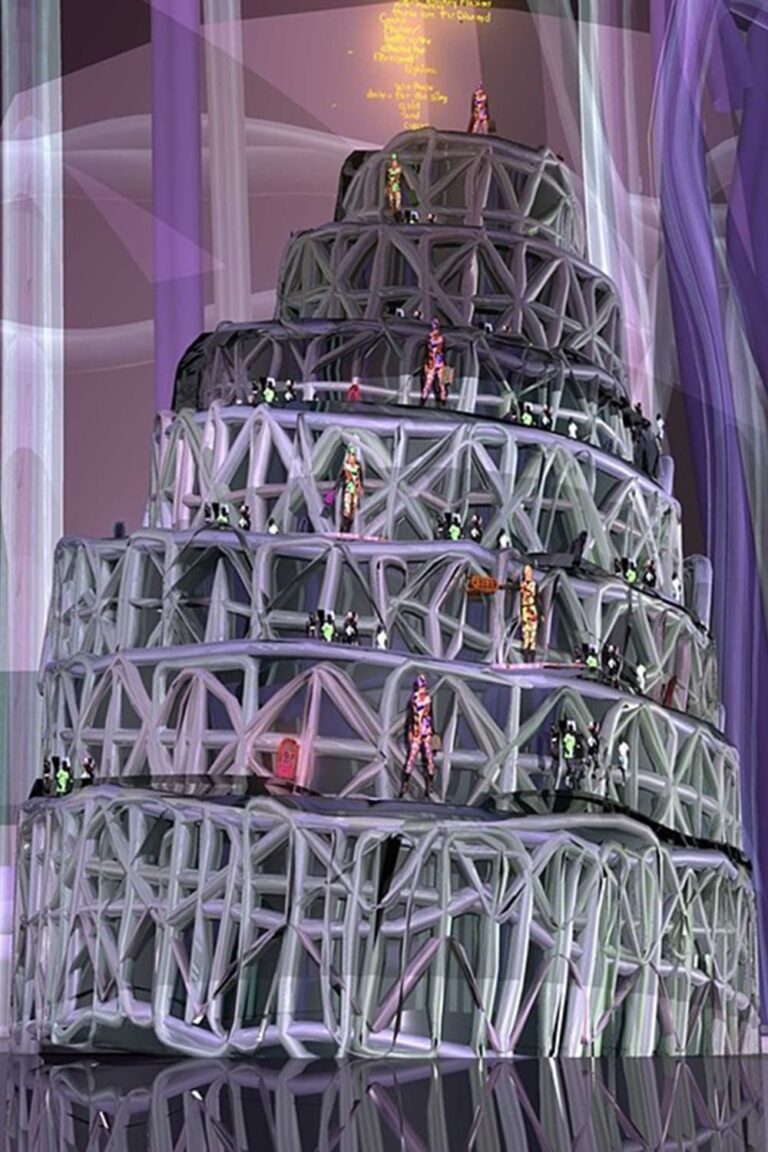 Described by its maker as an “Hieronymus Bosch Garden of Earthly Delights–inspired landscape,” Jacolby Satterwhite’s video abounds with a raucous and celebratory energy as it combines personal home movies of a family cookout, renditions of his mother’s drawings, and multiple simulations of himself dancing.