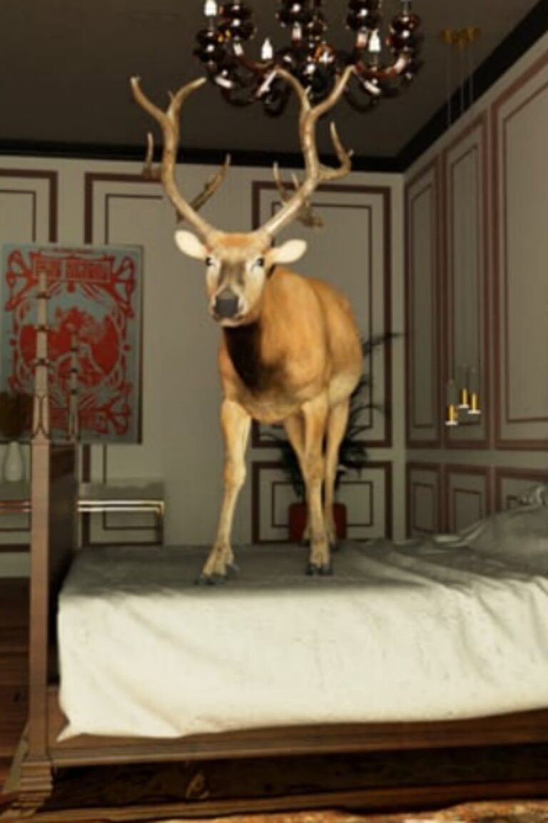Deer embrace architecture.