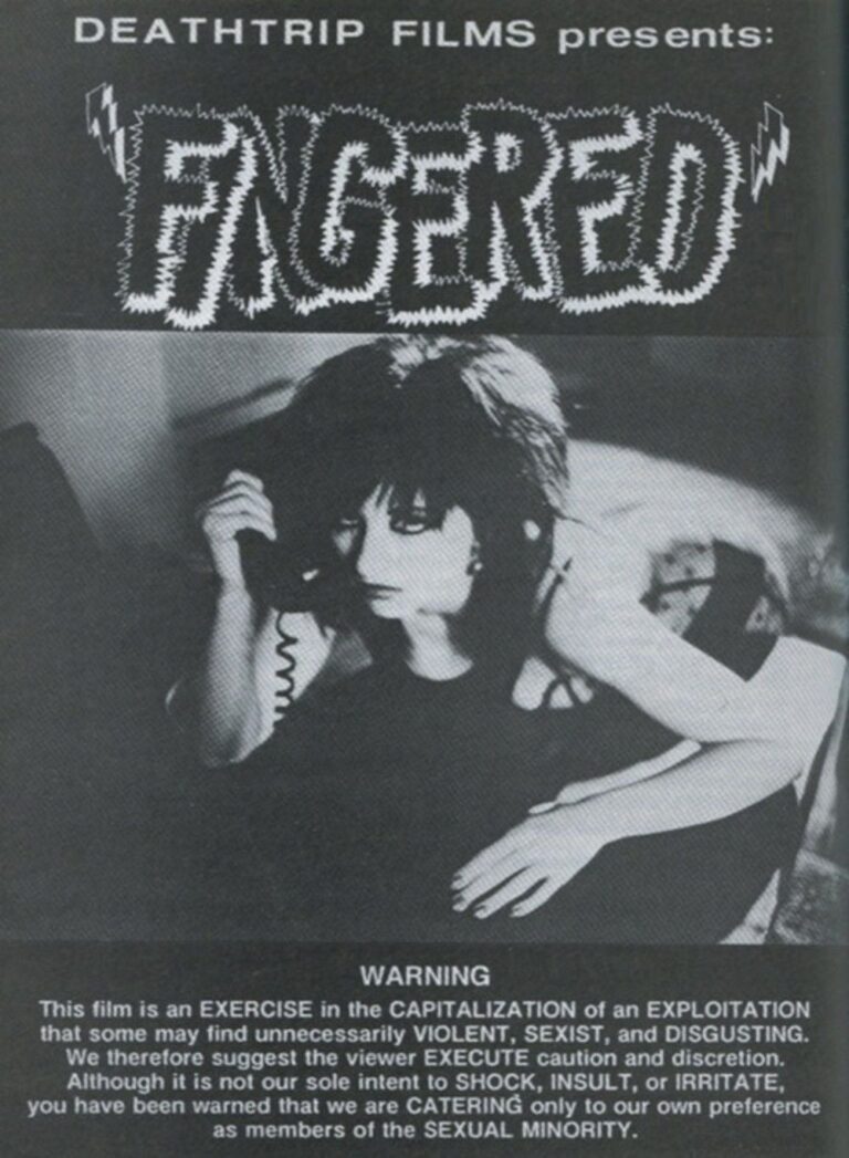 One of Richard Kern’s most ambitious works is Fingered (1986), whose sarcastic disclaimer says “although it is not our sole intention to shock, insult, or irritate, you have been warned that we are catering only to our own preferences as members of the sexual minority.”