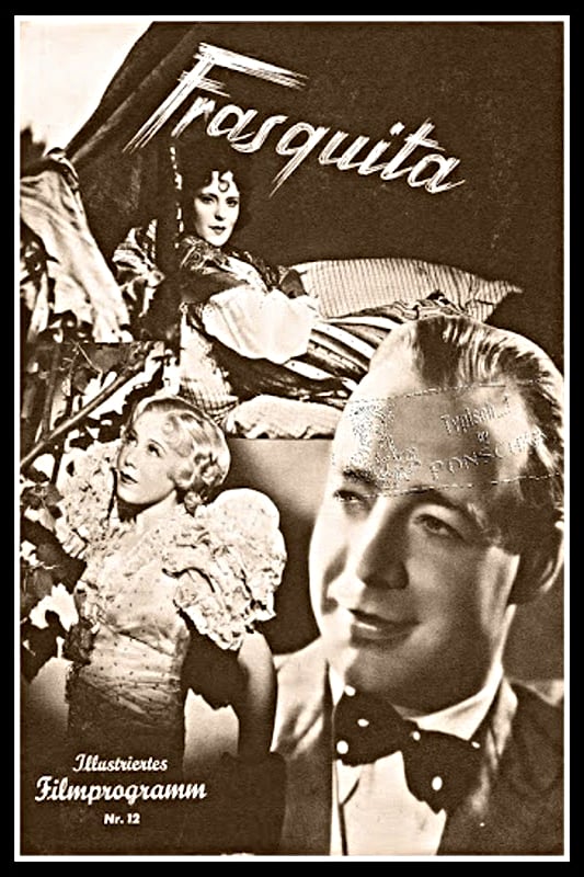 Czechoslovakian opera star Jarmila Novotna plays the title role in the Austrian tunefest Frasquita. Based on a Franz Lehar operetta, the story is the usual frothy nonsense. Dolly (Charlotte Daudert) is engaged to marry Hyppolit (Heinz Ruhmann), but she’s really in love with Harold (Hans Heinz-Bollman). Hyppolit is likewise enamored of another, namely Frasquita (Jarmila Novotna). Alas, Dolly and Hyppolit must go through with the wedding, despite the dictates of their hearts. That there’s a happy ending all the same comes as a surprise only to the characters on the screen.