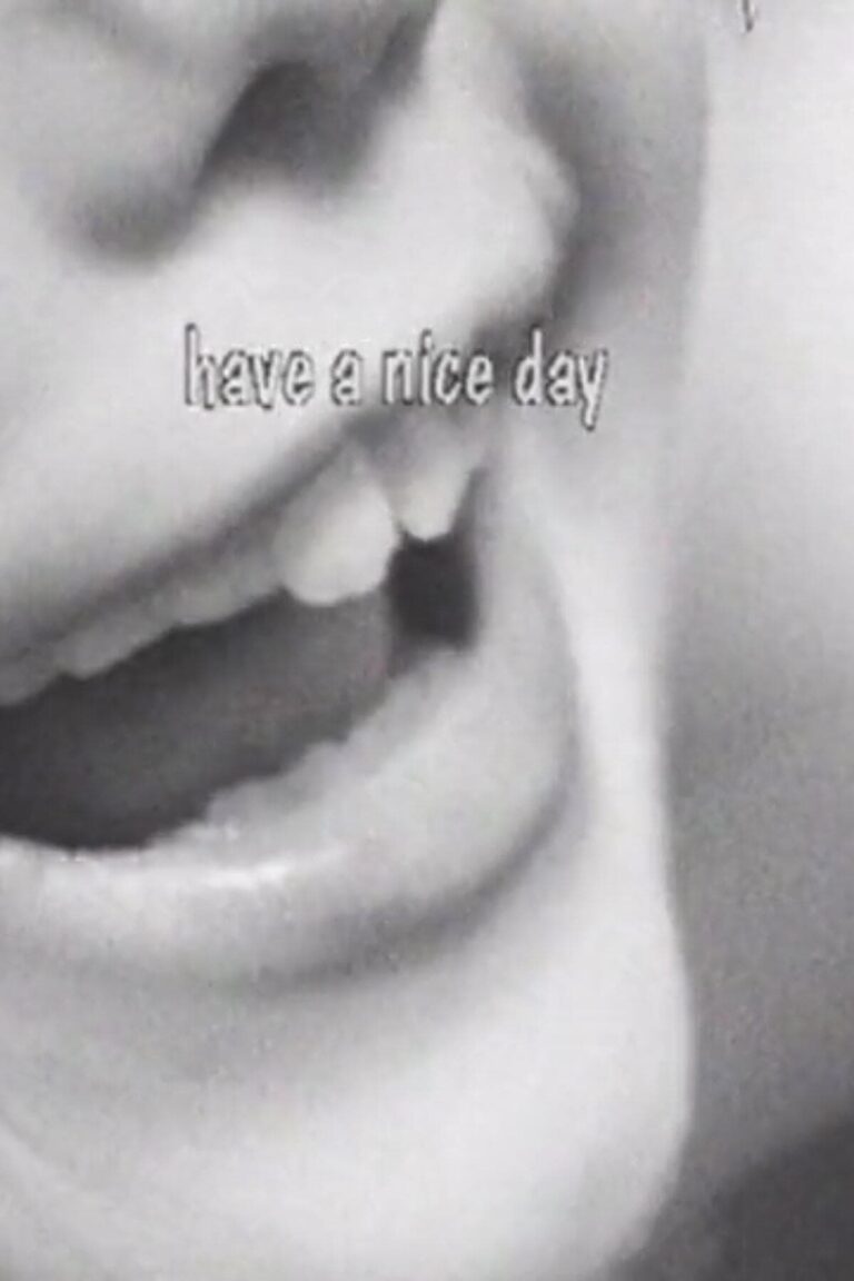 “Elusive and compelling, Have a Nice Day Alone is surpassingly strange, even for Leslie Thornton, an acknowledged genius of the unexpected. The entire spatial field of the film is activated by a technological nervous twitch, a bizarrely beautiful and hypnotic pulsing. The image shrinks, flows, collapses, seeming to follow some strange and hidden agenda. There is a text about speech on screen, visible through the pulse. In the background, extreme forms of vocalization, yodeling and macabre laughter punctuate the visual space. As the image flutters, a robotic voice speaks about various conditions of speech. Language is dislocated.It is unclear whether the voice mimics or generates the text.” (Thomas Zummer)