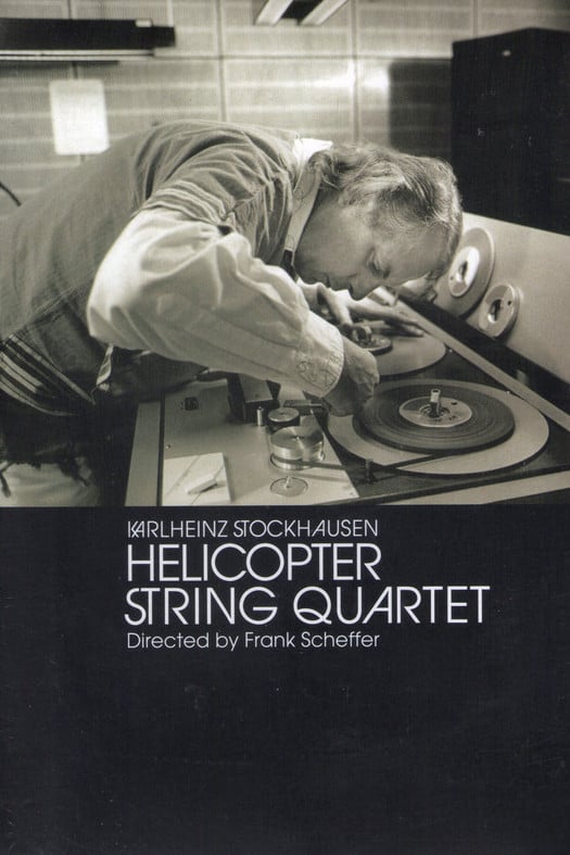 One morning, the late Karlheinz Stockhausen awoke from a dream that told him to take to the sky. Stockhausen envisioned four helicopters swirling in the clouds, with each of a quartet’s members tucked inside his own chopper, communicating through headsets, stringing away in sync to the rotor-blade motors. He immediately set forth to make that dream a reality. In 1995, Dutch film director Scheffer followed Stockhausen in the days leading up to the premiere performance of his Helicopter String Quartet in Amsterdam. The resulting film offers a rare glimpse of Stockhausen as he patiently dictates every agonizingly detailed measure to the Arditti Quartet.