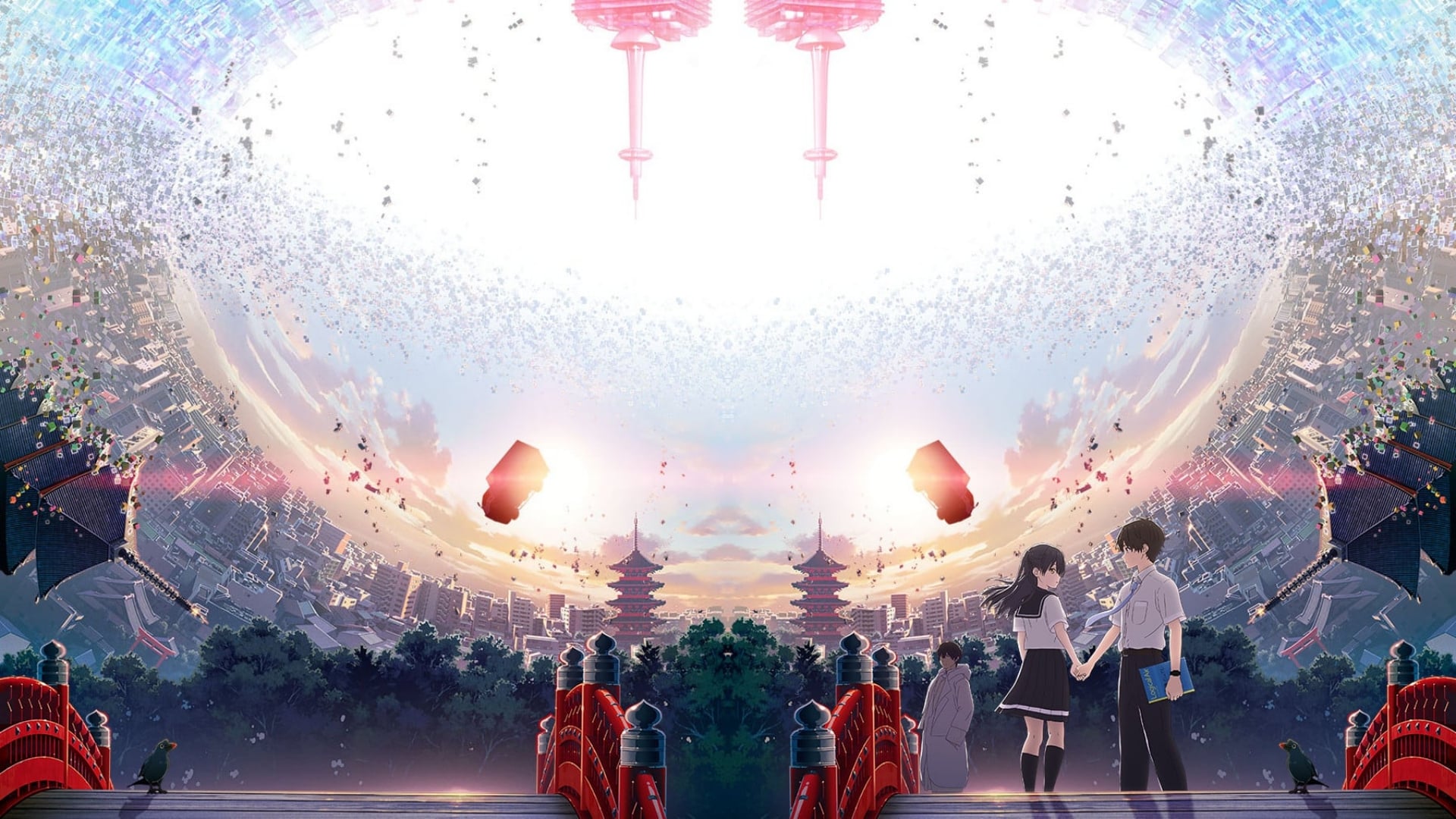 Year 2027, The city of Kyoto has undergone tremendous advancement. Within the city lives Naomi Katagaki, an introvert and Ruri Ichigyou, a girl with a cold personality. Both shares love for reading books. Despite having similar interests, Naomi is afraid to approach Ruri due to her unfriendly nature. One day, as Naomi goes out for a walk, a crimson aurora pierces through the sky for a brief moment. Shortly after, he sees a three-legged crow and a mysterious man who reveals himself to be Naomi from 10 years in the future, explaining that he has come to change a tragic event that happens to Ruri shortly after they start dating. Naomi follows his future self’s instructions and starts getting closer to Ruri, determined to save her. With the help of his future self, Naomi begins his preparations to save Ruri. Will he be able to change the future?