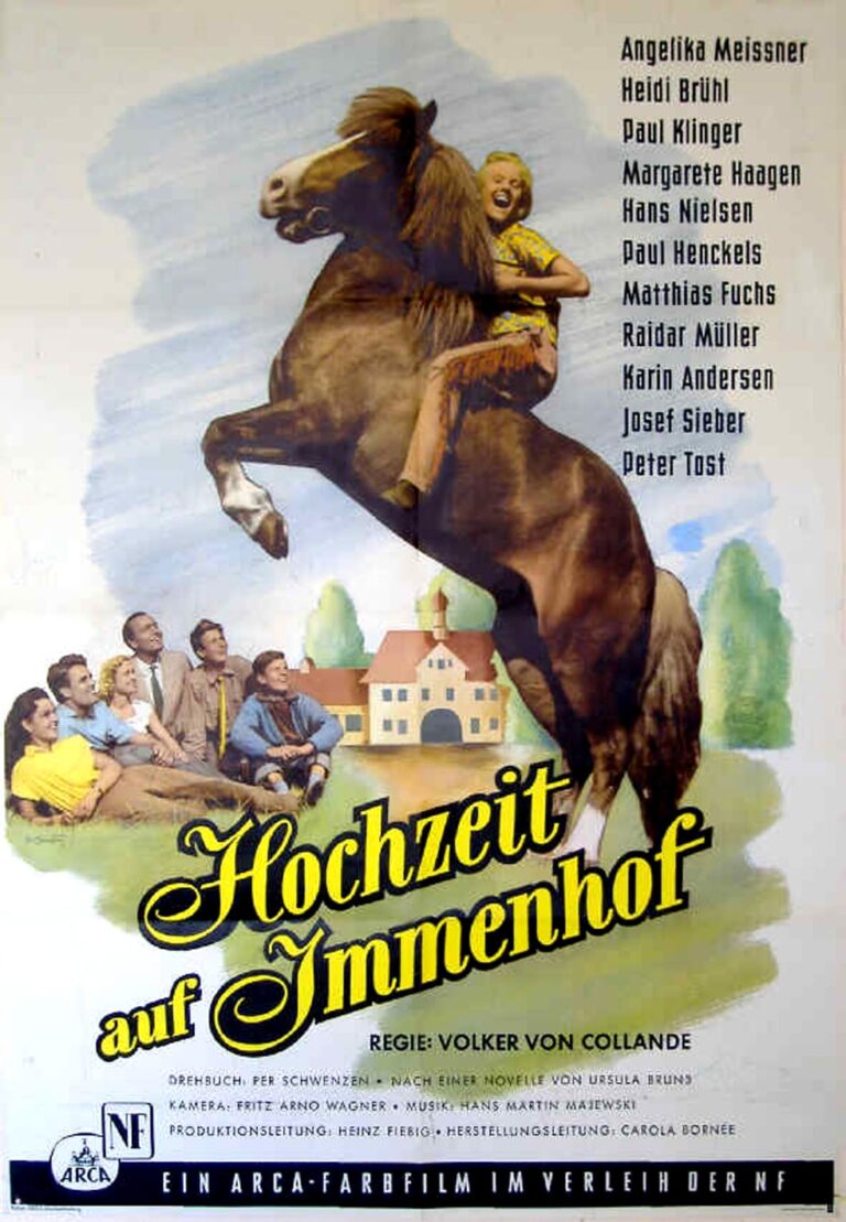 The Immenhof has been closed by officials, awaiting auction. In the meantime, Angela has died, so Jochen is now a widower. Oma Jantzen and Angela’s younger sisters Dick and Dalli live with him in the forester’s house. In order to save the manor house, Dalli has started a “pony circus” with the village children in the barn, while Dick has given up hope of Ethelbert ever returning.