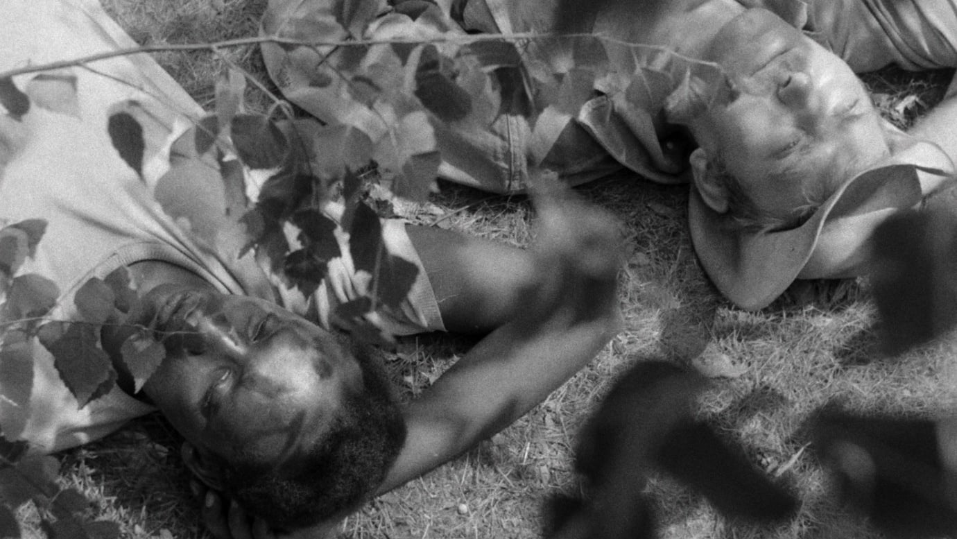 Ibrahim Shaddad’s graduation film Jagdpartie (1964), which he shot at the Deutsche Hochschule für Filmkunst Potsdam-Babelsberg (now: Filmuniversität Babelsberg KONRAD WOLF), is a treatise on racism. Shot in a forest in Brandenburg, it uses a Western look to portray the hunt for a Black man.