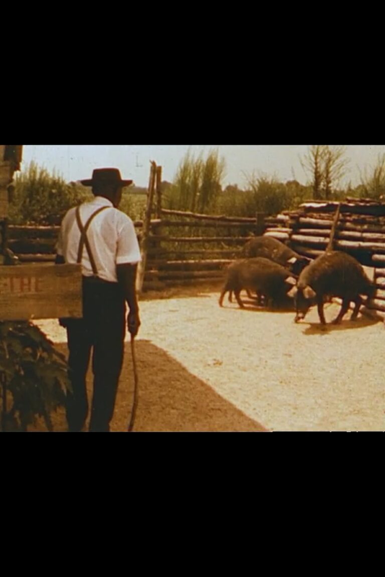 Meet Tom Johnson and his praying pigs. “Been fooling with them hogs for 35 long years,” Johnson says in the film as he rocks on the porch of his modest residence near Bentonia, Mississippi. “It’s just an idea that I took up. It’s a play thing. And it put me into something that I didn’t get out of too easy and so soon.” The pigs, taught to stand beside their brimming slop trough with heads bowed while Johnson prayed over their food, dug in with gusto when he finally released them to eat. Johnson died in 1980, but the four minute film is a lasting reminder of his special pig training talents.