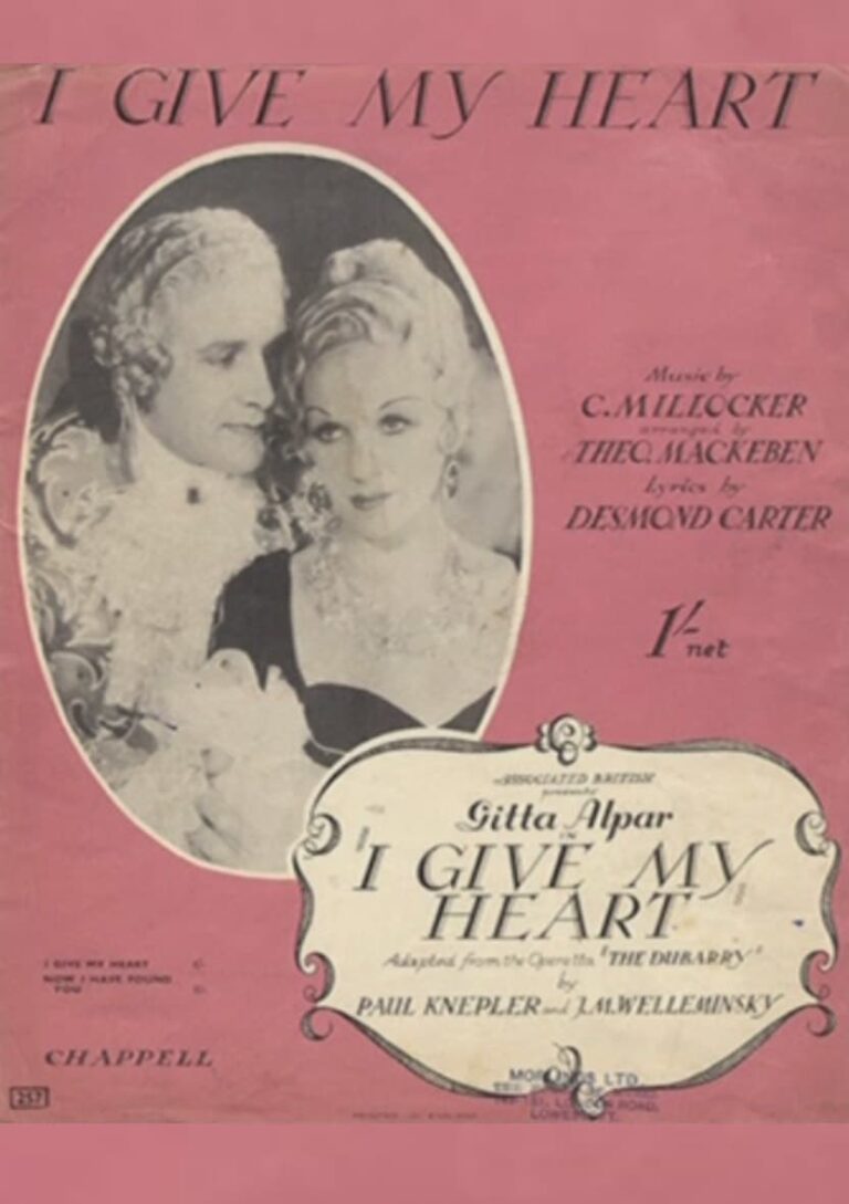 The Loves of Mme. DuBarry was the American title of the 1935 British operetta I Give My Heart, based on the stage musical The DuBarry. German actress Gitta Alpar stars as Jeanne, the young 18th century Parisian milliner who sleeps her way to the uppermost rungs of French aristocracy, emerging at last as the glamorous Madame DuBarry, mistress of Louis XV (Owen Nares). Refusing to gloss over DuBarry’s sexual peccadilloes (as previous films with Norma Talmadge and Dolores del Rio had done), the film presents the “heroine” as a whore, pure and simple-or, on second thought, not so pure and simple! Particularly troublesome for American censors was a scene in which DuBarry is depicted as a resident of a bawdy house. Otherwise, The Loves of Madame DuBarry is standard historical-drama fare, allowing dozens of top European actors to play “dress-up” for 90 minutes.