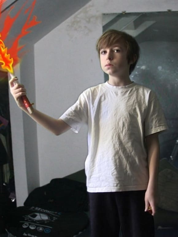 The filmmaker asks her ten-year-old son about his arsenal of weapons, many of which are intended for other use; the handle of a back brush, juggling batons, and a plastic cricket stump. Despite his enthusiasm for maiming and killing Harvey has no idea why we have wars.