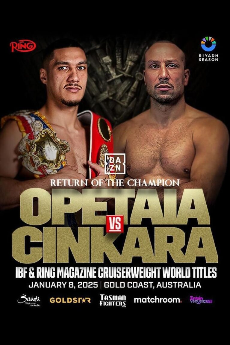 Jai Opetaia defends his Ring Magazine & IBF Cruiserweight World Titles against Huseyin Cinkara at the Gold Coast Convention Centre.