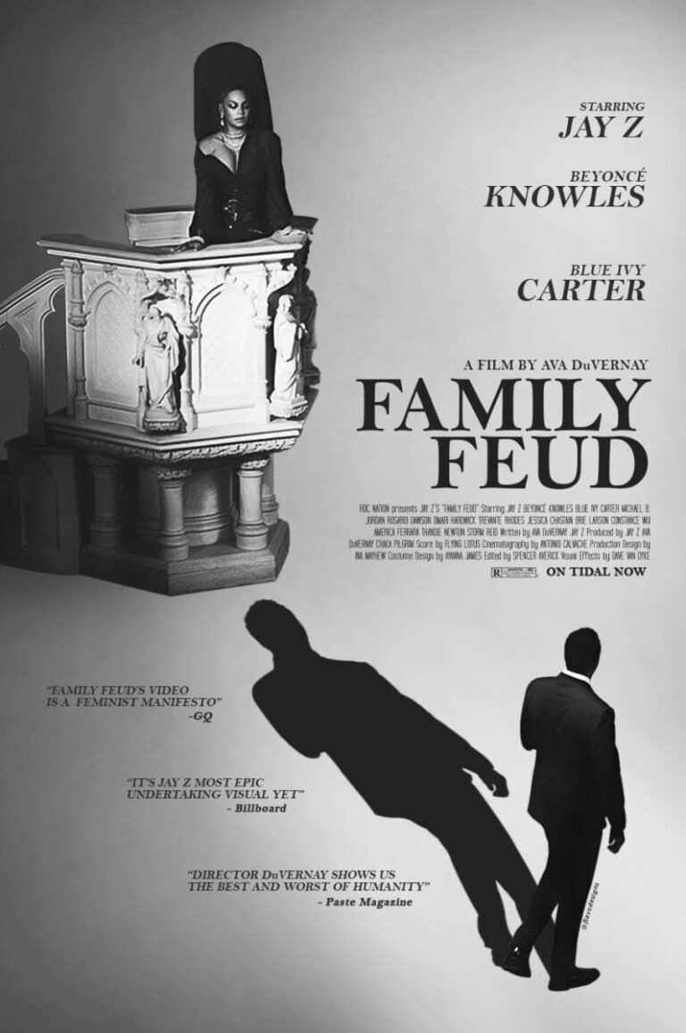 The nearly eight-minute film, directed by Ava Duvernay, takes a historical trip in reverse, starting in 2444 and ending up in 2018 with Jay-Z and daughter Blue Ivy in church. His wife, Beyoncé, then appears. The production has a Godfather vibe to it, complete with cathedral scene, and Jay-Z references the classic film when he raps.