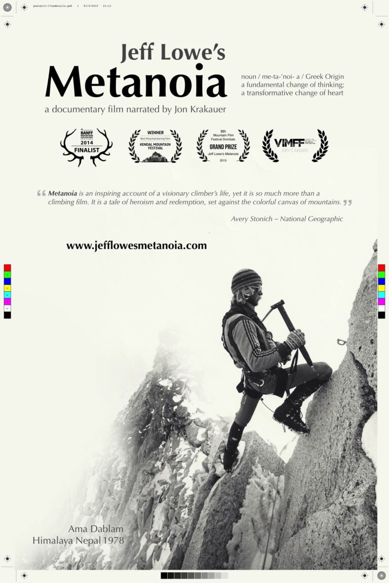 One of the greatest world-class athletes of all time, Jeff Lowe has made climbing what it is today. He contributed to the development of the modern ice screw and cam, invented the grading system used worldwide for mixed climbs, authored now classic books on climbing technique, brought the first Sport Climbing Championships to America and opened the ice park in Ouray, Colorado. In this film, Jeff tells the extraordinary story of his historic nine-day mid-winter solo ascent of the north face of the Eiger in 1991—a route he named “Metanoia”— which has never been climbed since. Jeff’s “unimaginable” new route up the Eiger prepared him for the greatest adventure he’s ever been on, the climb of his life as he slowly loses all of his physical abilities and faces his own mortality.