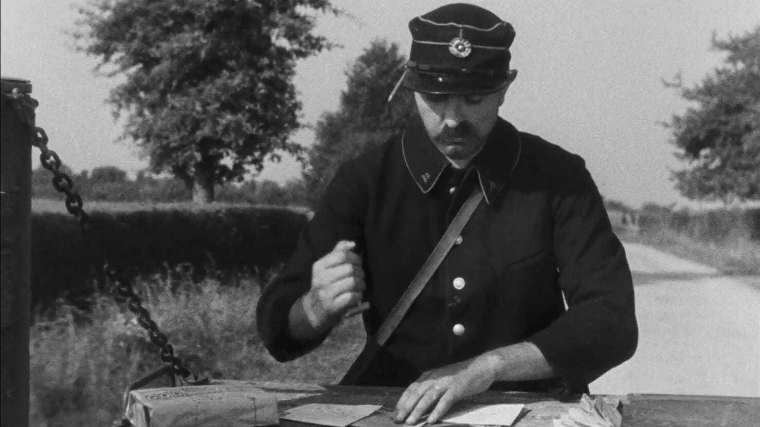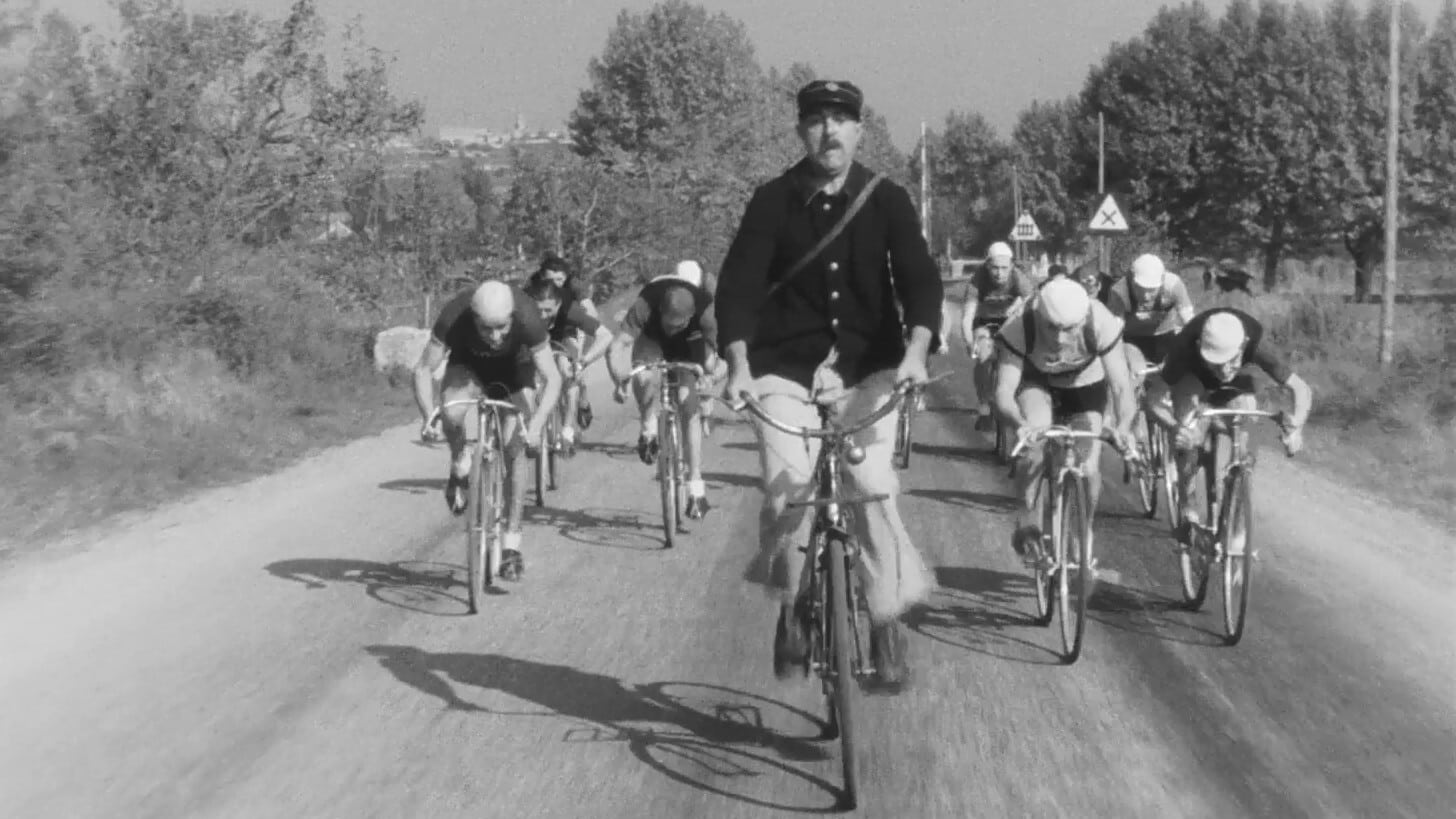 Jour de Fête tells the story of an inept and easily-distracted French mailman who frequently interrupts his duties to converse with the local inhabitants, as well as inspect the traveling fair that has come to his small community. Influenced by too much wine and a newsreel account of rapid transportation methods used by the United States postal system, he goes to hilarious lengths to speed the delivery of mail while aboard his bicycle.