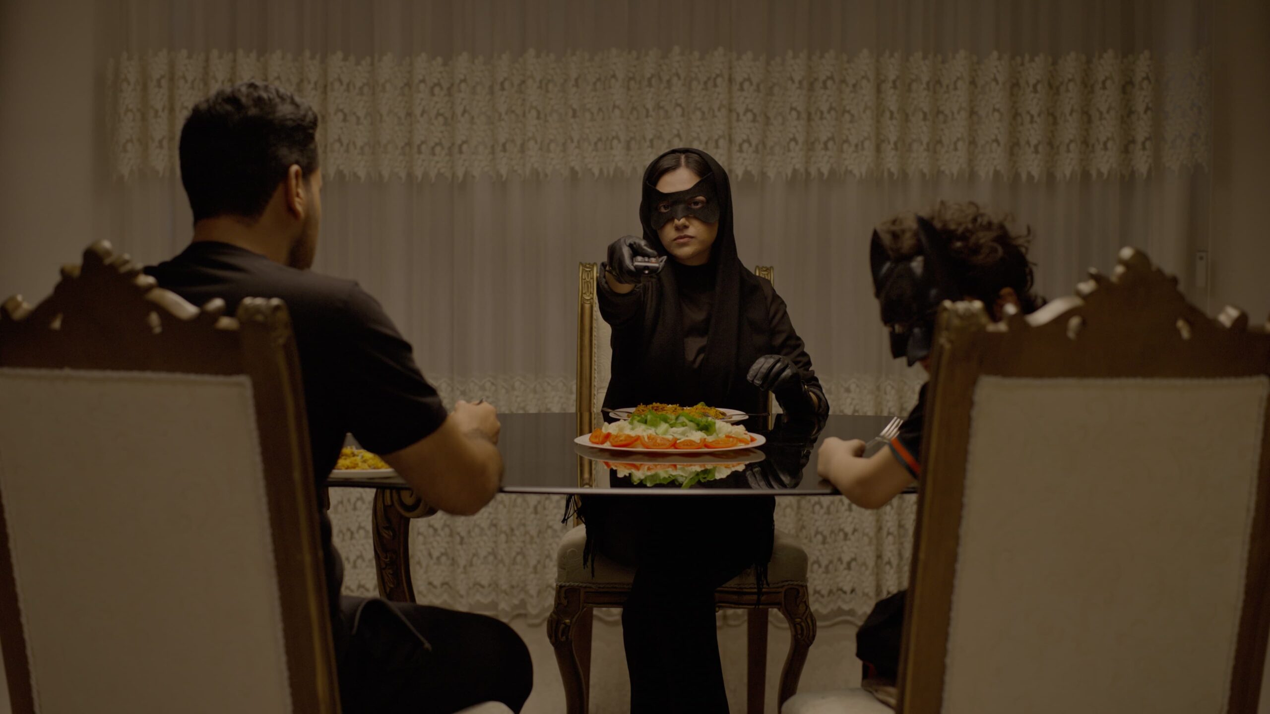 Mother and son played Catwoman-Batman Game before father came in. Meanwhile, some noise and screams are heard from the next door; it seems the man next door hurt his wife. It’s time for the father to play a role in the game.