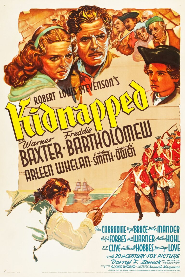 Robert Louis Stevenson’s hero David Balfour (Freddie Bartholomew) joins rebel Alan Breck Stewart (Warner Baxter) in 18th-century Scotland.