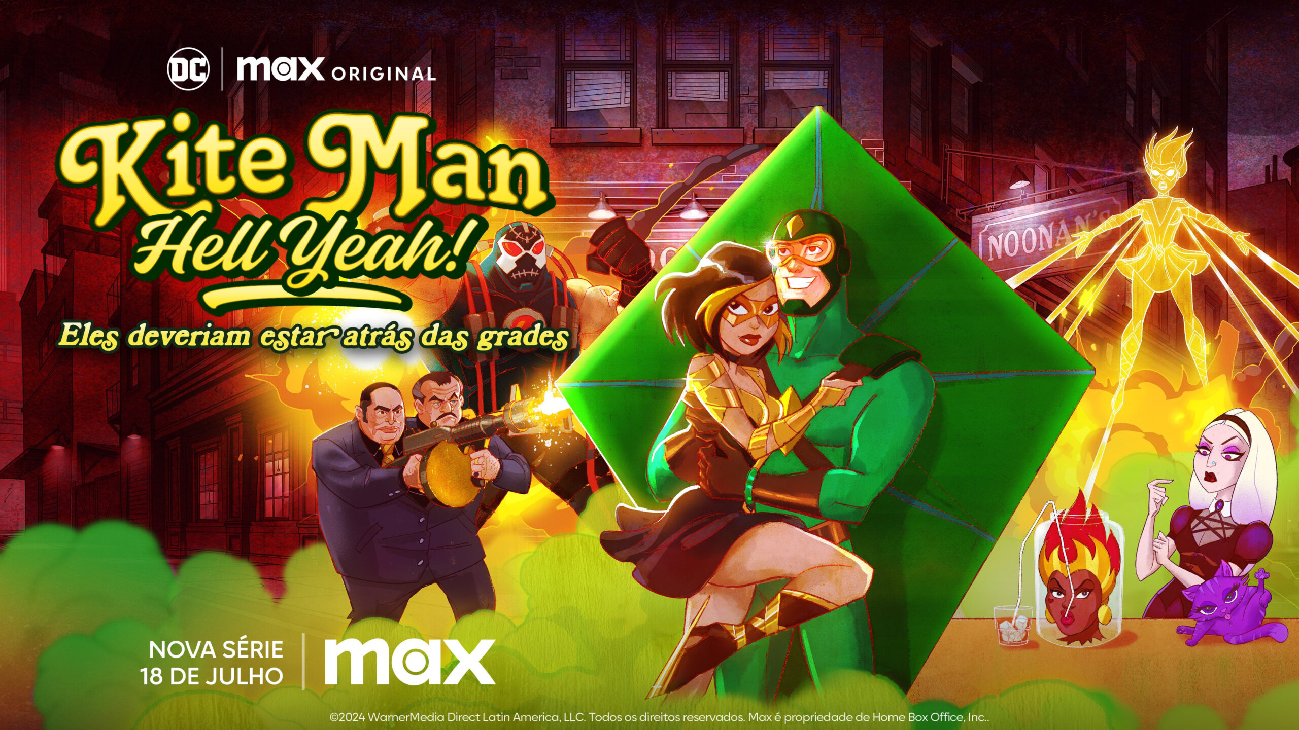 Lovable loser Kite Man and his new squeeze Golden Glider moonlight as criminals to support their foolish purchase of Noonan’s, Gotham’s seediest dive bar, where everybody knows your name, but not necessarily your secret identity!