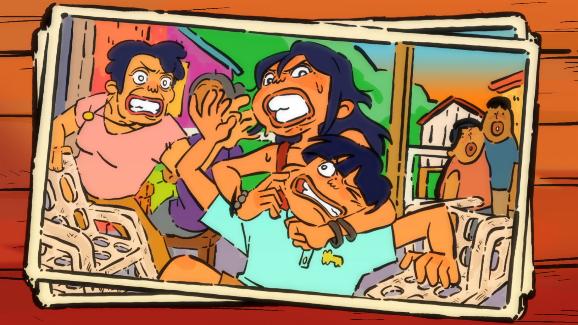What’s a party without dessert? A young boy races to fetch dessert for the party before his older sister, leading to a race for their mother’s approval.