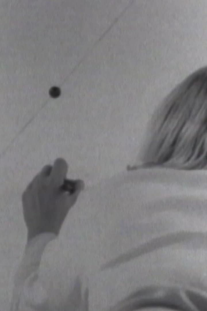 A blond woman (Susan Marshall) in white pants and shirt interacts with a moving round object and the camera. Camerawork by Phill Niblock.