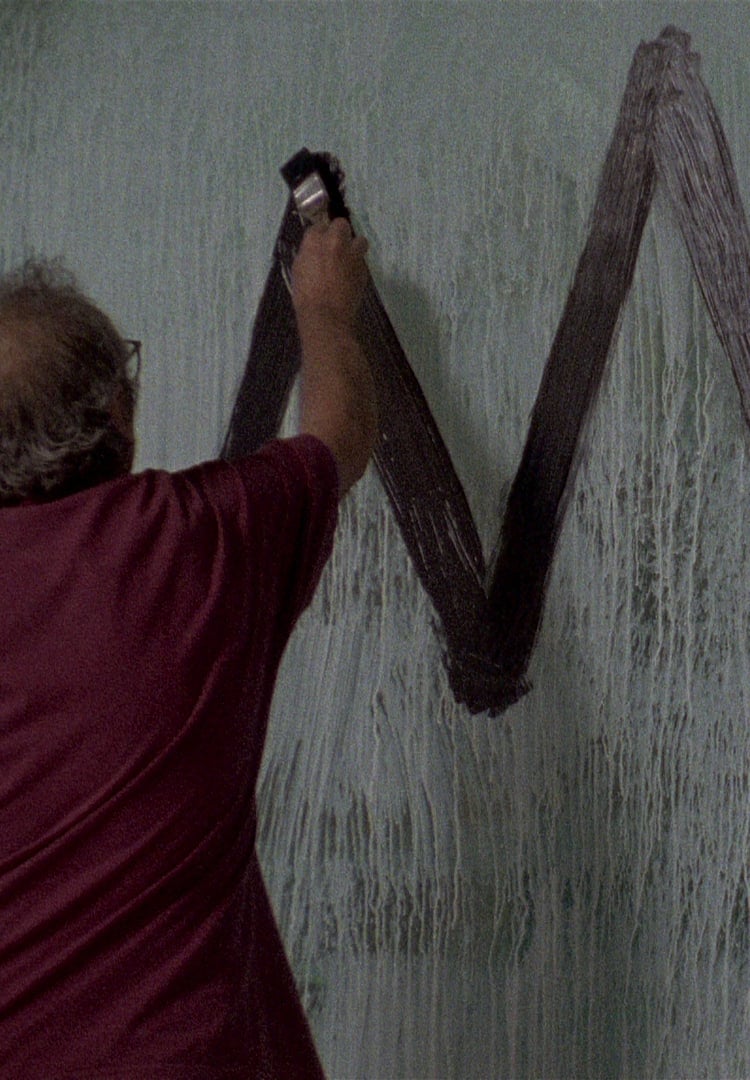 Portrait of the painter Manuel Moldes, from Pontevedra, Spain, about the work he does in the preparation of a retrospective of his work.