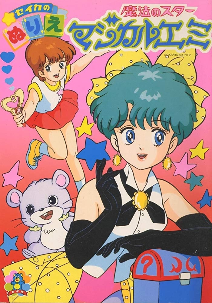 Kazuki Mai, an elementary schoolgirl, wanted to be a magician but her skills weren’t good enough for her to join her grandparents’ Magiccarat troupe. One day she sees a light enter a strange heart-shaped mirror. The light is actually a mirror fairy named Topo, who takes over her favourite stuffed toy, a flying squirrel and gives her a bracelet with the 4 card suits. The bracelet can turn into a bubble wand which transforms Mai into the 18 year old magician Magical Emi, who uses her magic to help people and participate in her grandparents’ shows.