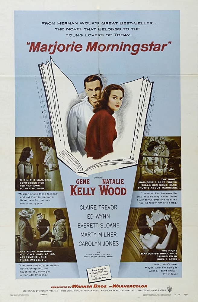 While working as a counselor at a summer camp, college-student Marjorie Morgenstern falls for 32-year-old Noel Airman, a would-be dramatist working at a nearby summer theater. Like Marjorie, he is an upper-middle-class New York Jew (born ‘Ehrman’), but has fallen away from his roots, and Marjorie’s parents object among other things to his lack of a suitable profession, such as medicine or law. Noel himself warns Marjorie repeatedly that she’s much too naive and conventional for him, but they nonetheless fall in love. As they pursue an on-again-off-again relationship, Marjorie completes her studies at Hunter College, and works to establish an acting career, while Noel first leaves the theater for a job with an advertising agency, but later completes a musical he’d started writing before he and Marjorie had first met.