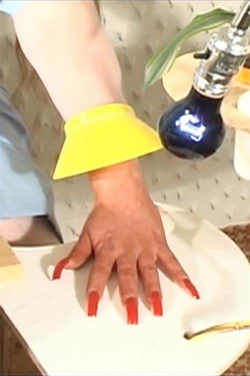 Several women within surreal pastel chambers collectively fabricate maraschino cherries from red fingernails.